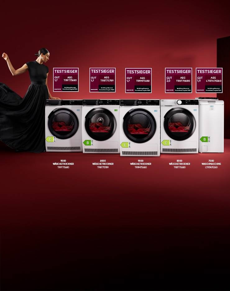 Der AEG 9000 AbsoluteCare® Trockner TR9M75680 wurde im aktuellen Wäschetrockner-Test der Stiftung Warentest (09/2025) mit der Gesamtnote 1,7 als Testsieger ausgezeichnet.