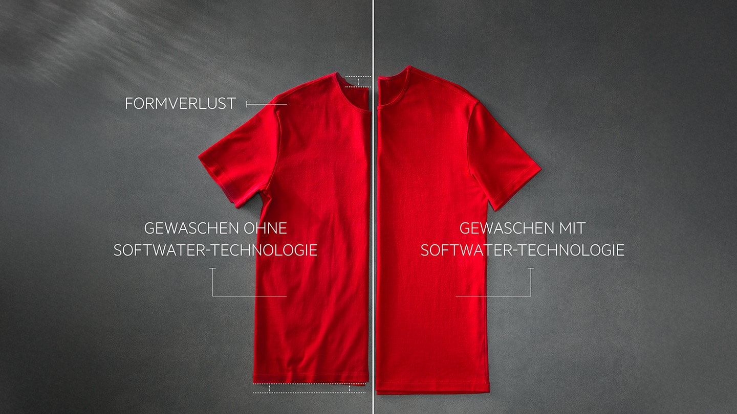 Erhalte das Frisch-gekauft-Gefühl. Die SoftWater-Technologie enthärtet das verwendete Wasser und bewahrt leuchtende Farben*.