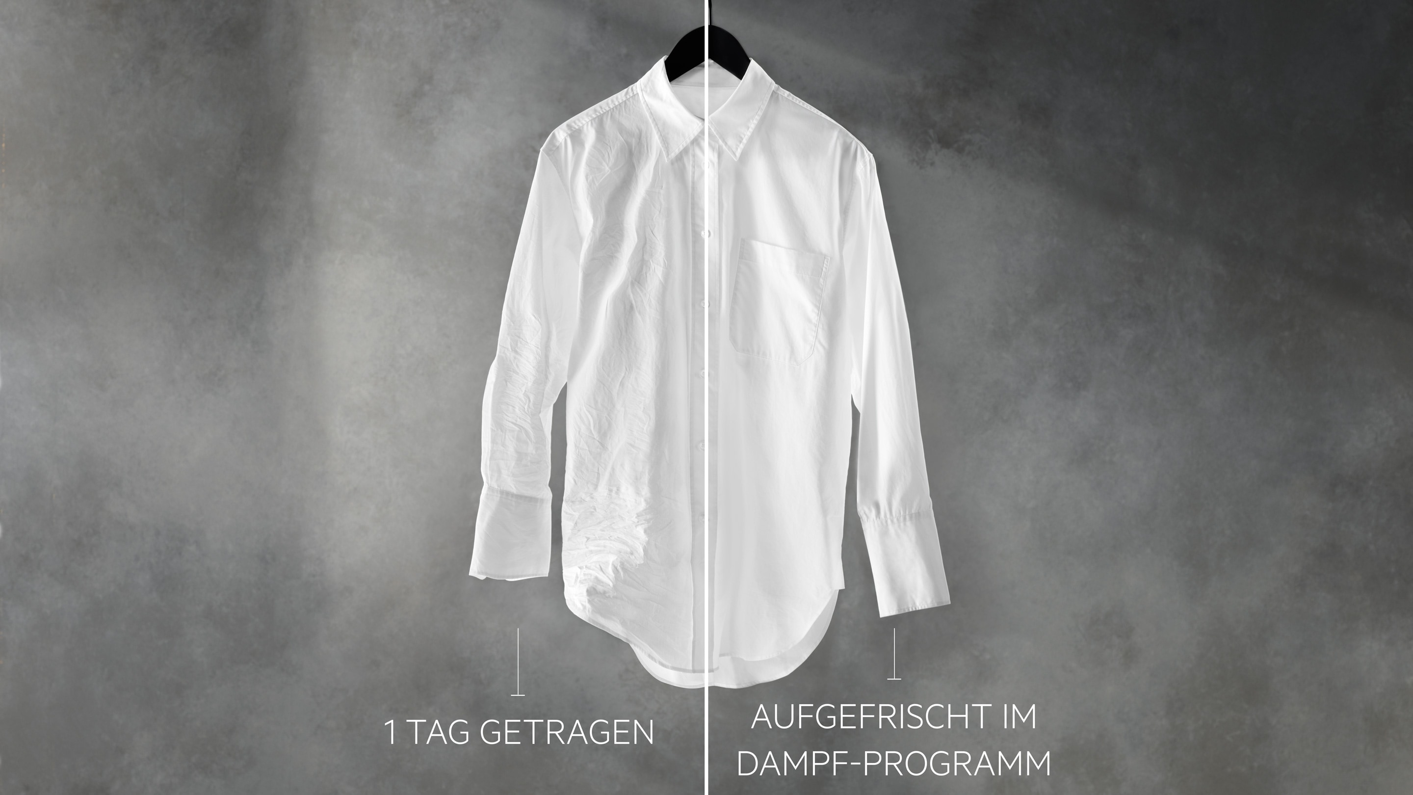 Mit dem Dampf-Programm erhältst du das Frisch-Gewaschen-Gefühl in 25 Min. Gerüche werden neutralisiert und vorhandene Falten reduziert. Das spart dir und der Umwelt die Zeit & Energie eines vollständigen Waschgangs und benötigt dabei nur 2 L Wasser.