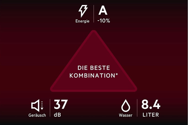 ***Innerhalb des EU-Marktes. Basierend auf den Modellen AEG 9000/9000 XXL, die in einem Gerät einen Geräuschpegel von 37 dB, einen Wasserverbrauch von 8,4 l und einen Energieeffizienzindex (EEI) kombinieren, der 10 % unter dem Schwellenwert für die Klasse A gemäß der Energieverbrauchskennzeichnung nach der Verordnung EU2019/2017 des Europäischen Produktregisters für Energieverbrauchskennzeichnung liegt. September 2025.