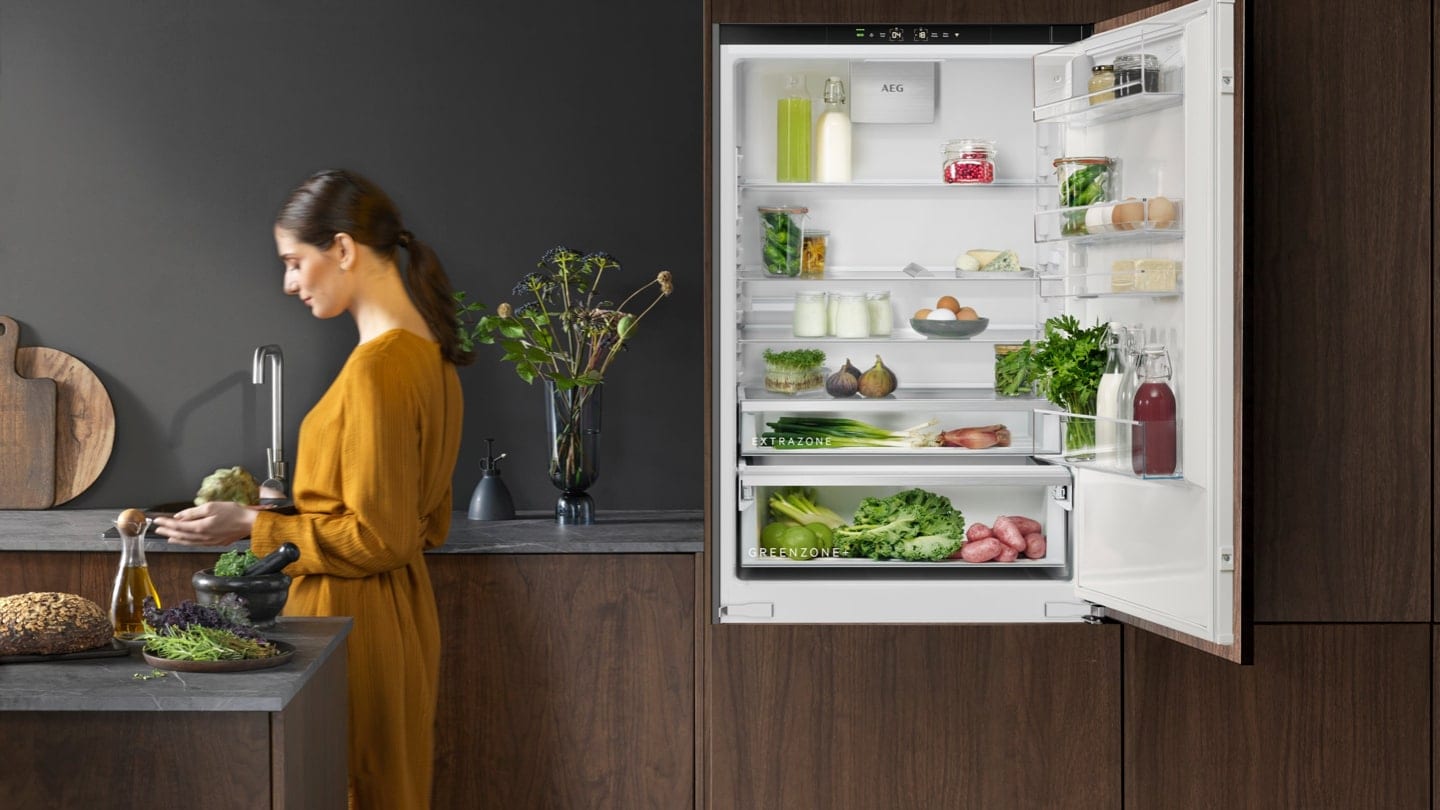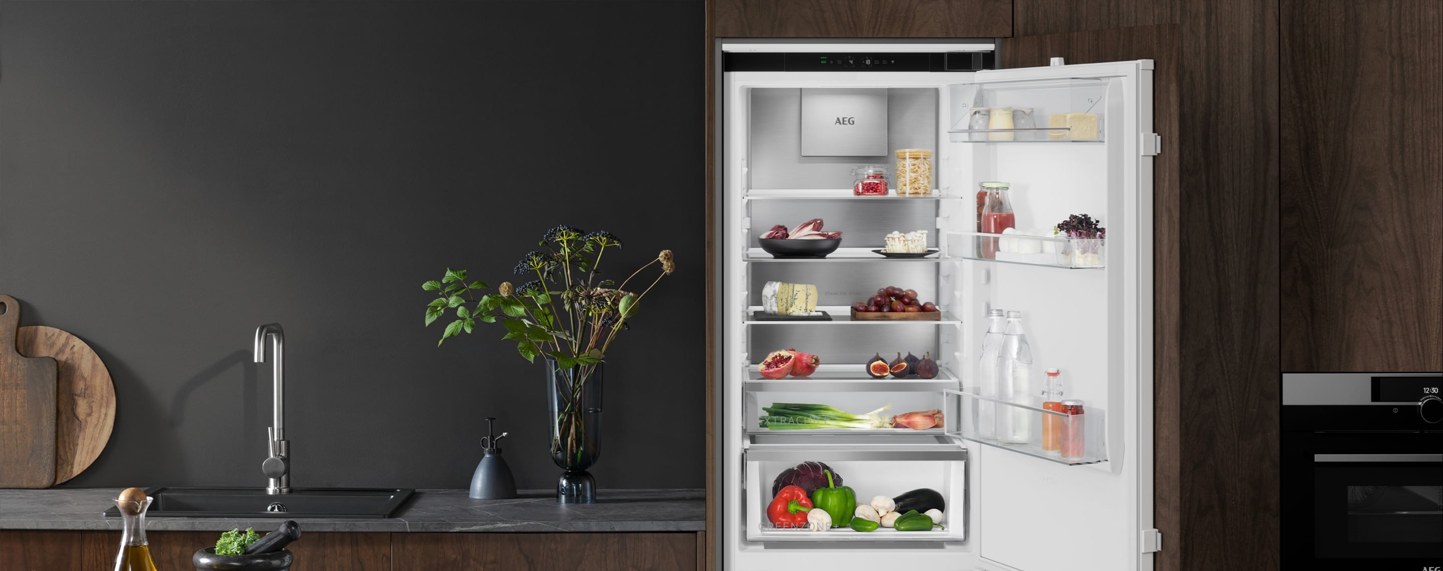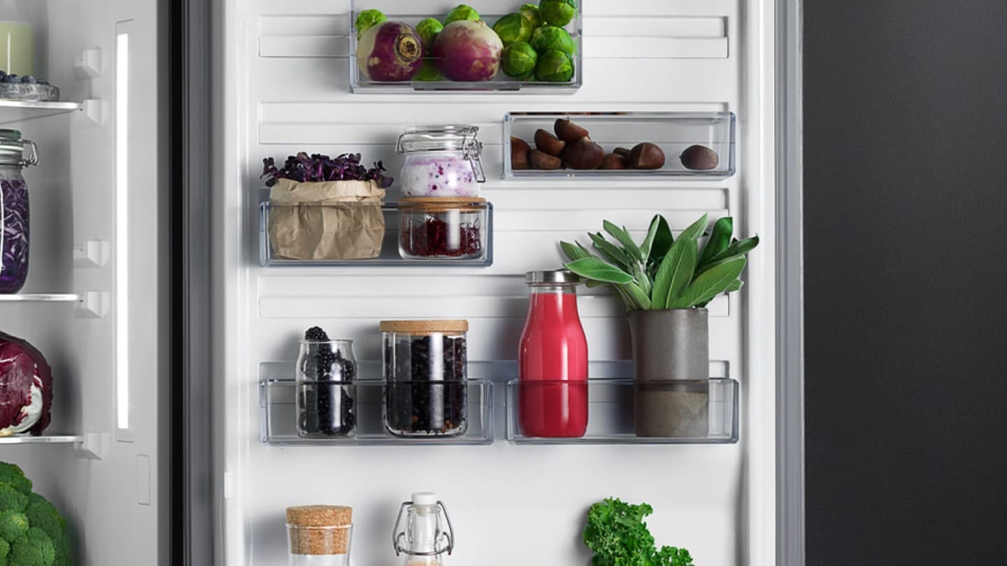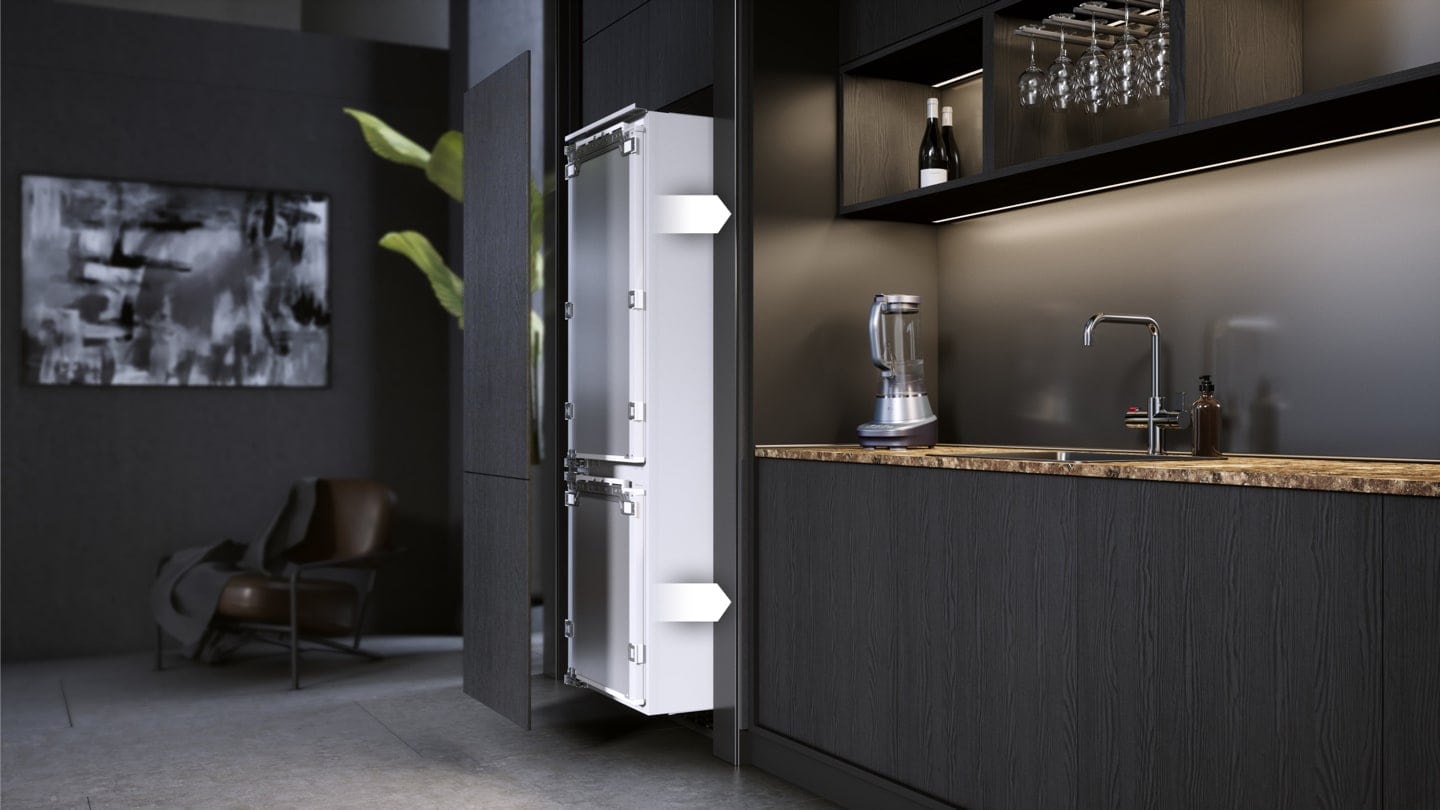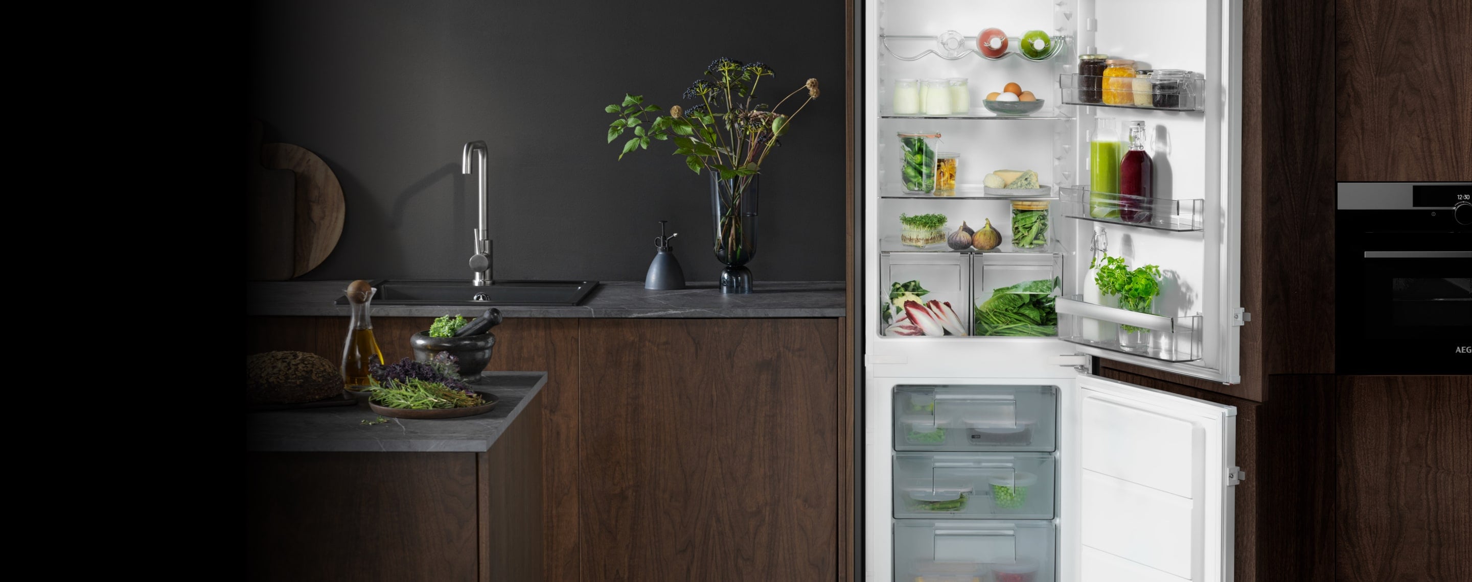 Integriert: Dieser Kühlschrank wird hinter einer Schranktür eingebaut und passt so perfekt zum deinem Küchendesign. Unterschiedliche Modelle ermöglichen die Wahl des Gefrierfachs oben oder unten.