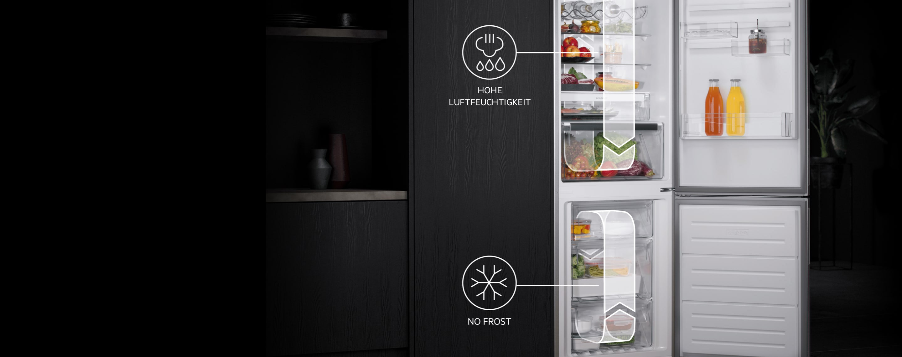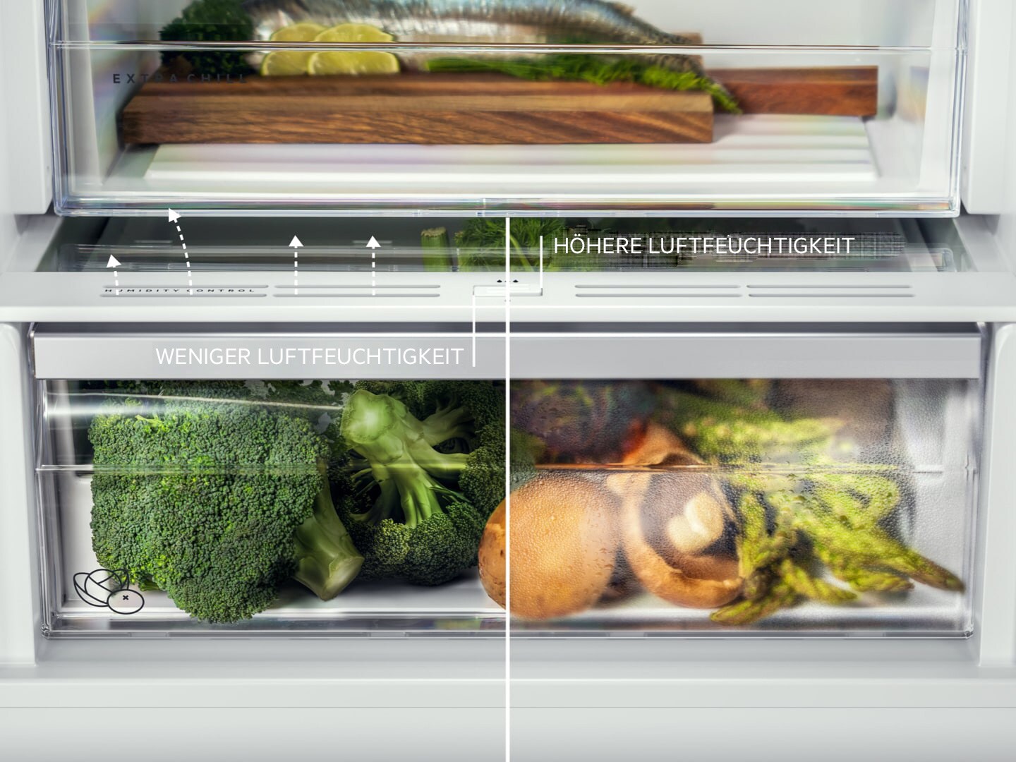Unsere optimierten Kühl-Gefrierkombinationen schützen jetzt alles, was dir wichtig ist: deine Lebensmittel, deine Gesundheit und den Planeten. Drei Faktoren kümmern sich um den Schutz der Lebensmittelqualität: Stabile Temperatur, angemessene Luftfeuchtigkeit und eine versiegelte Umgebung.
