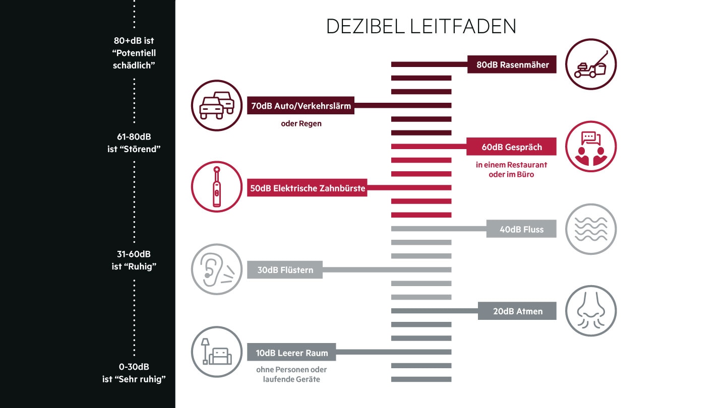 Wenn du eine offene Küche hast oder eine ruhige Umgebung bevorzugst, dann wähle ein Kühlgerät mit einem niedrigen Dezibel-Wert (dB).