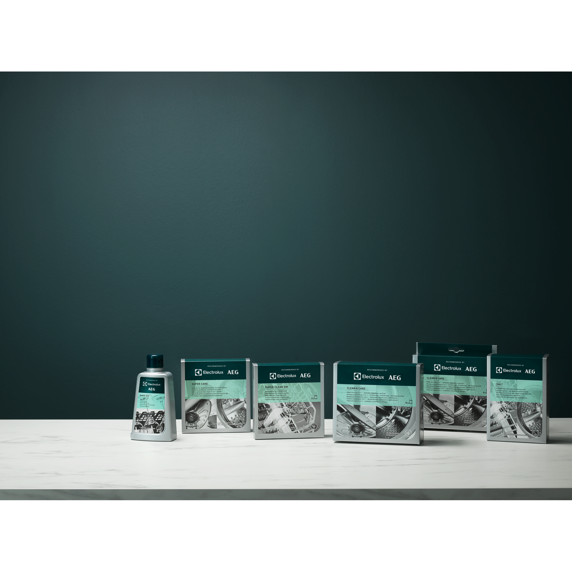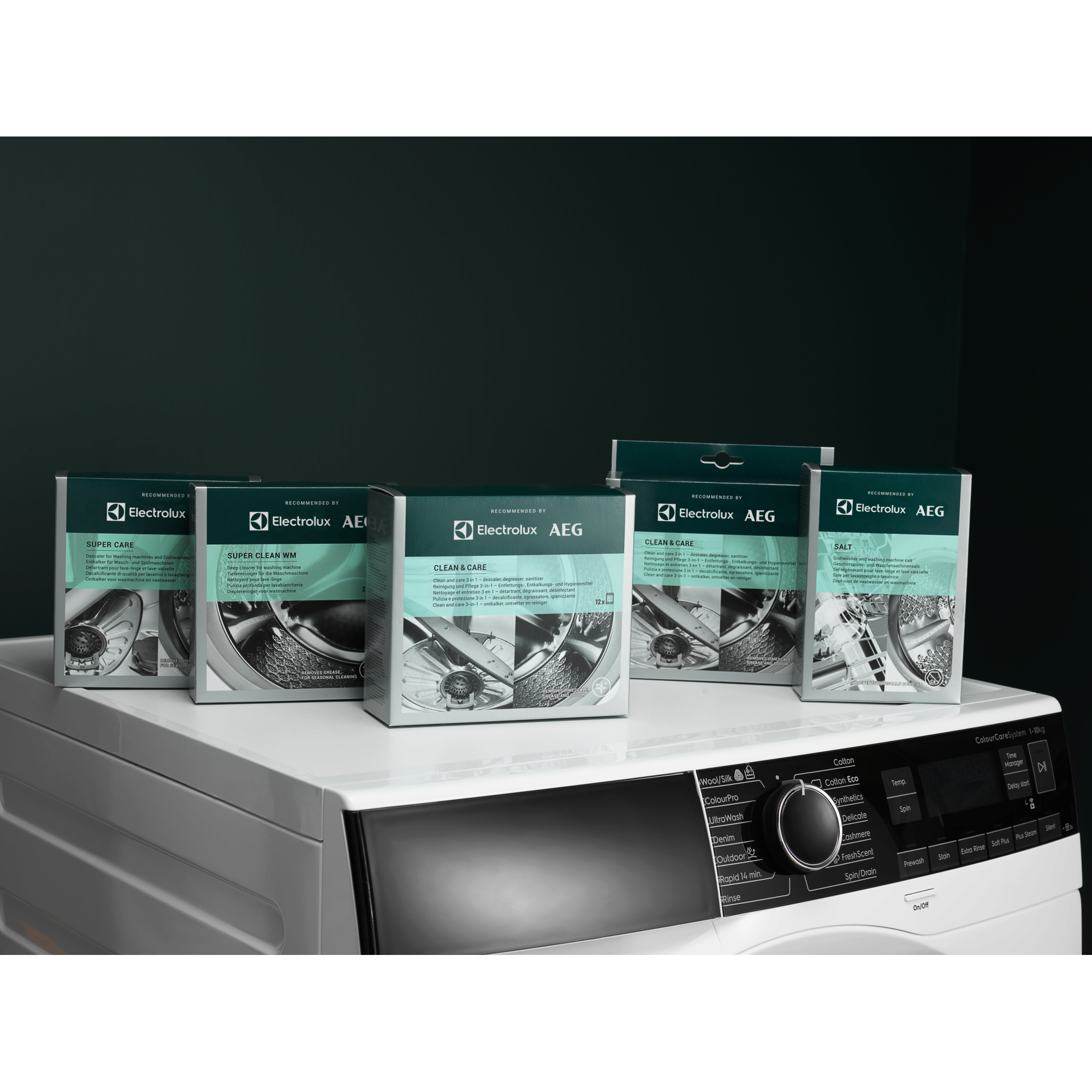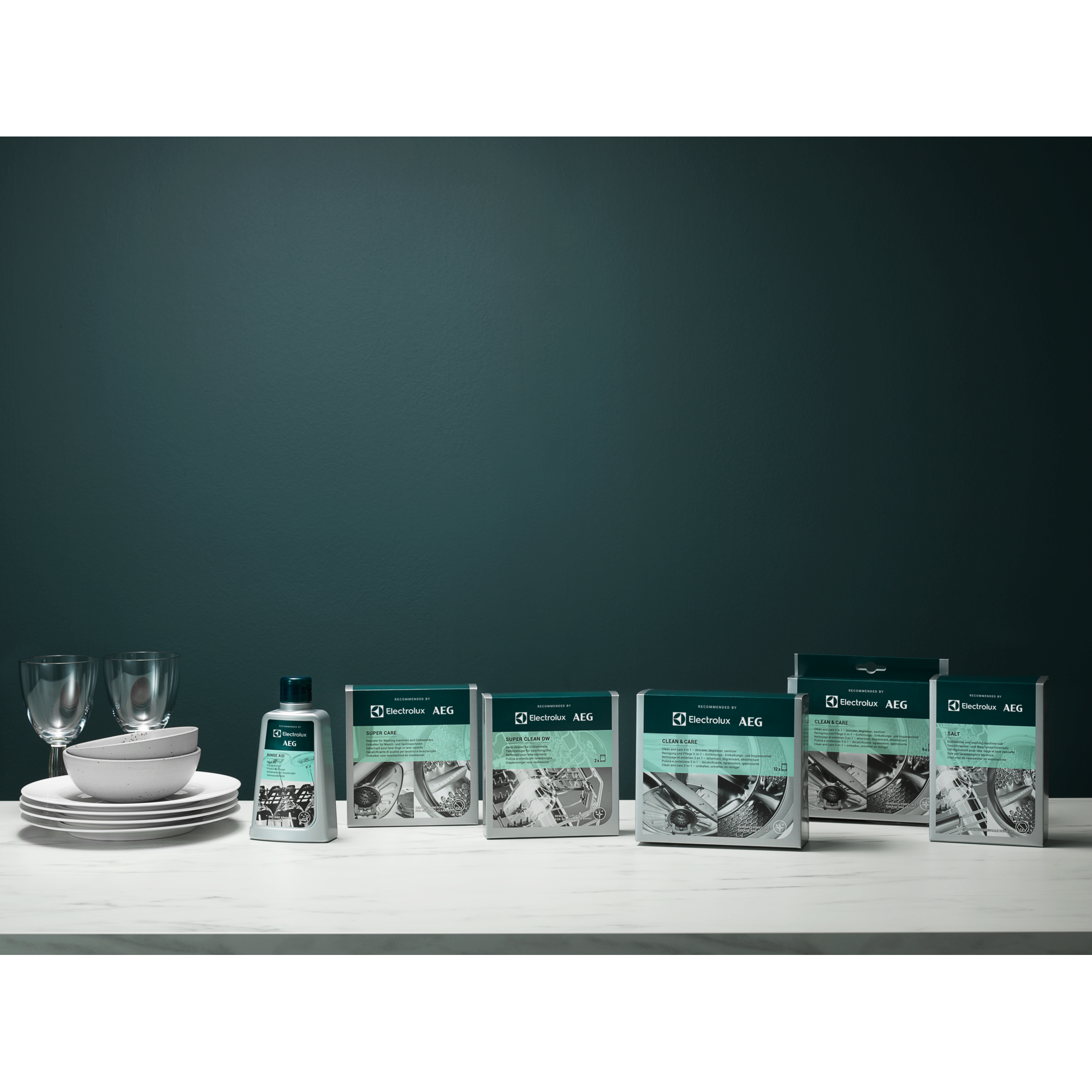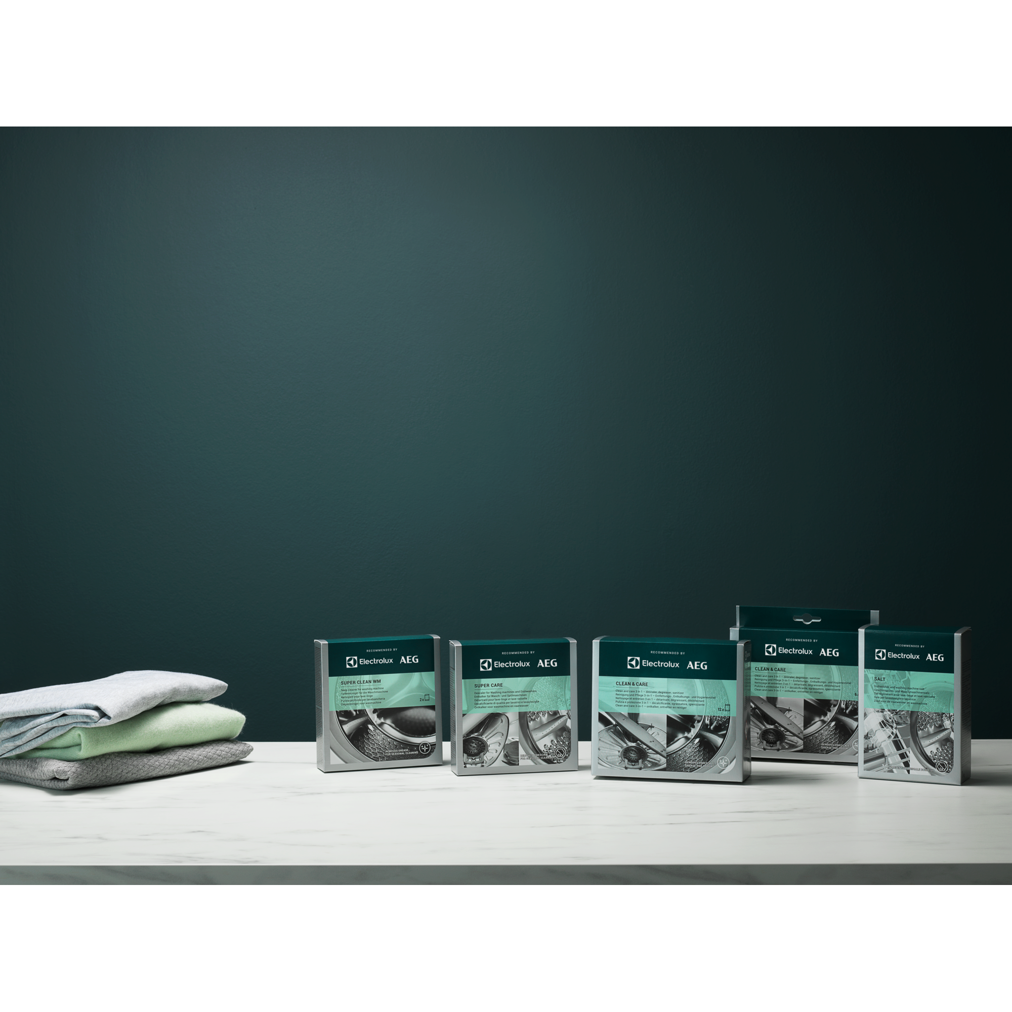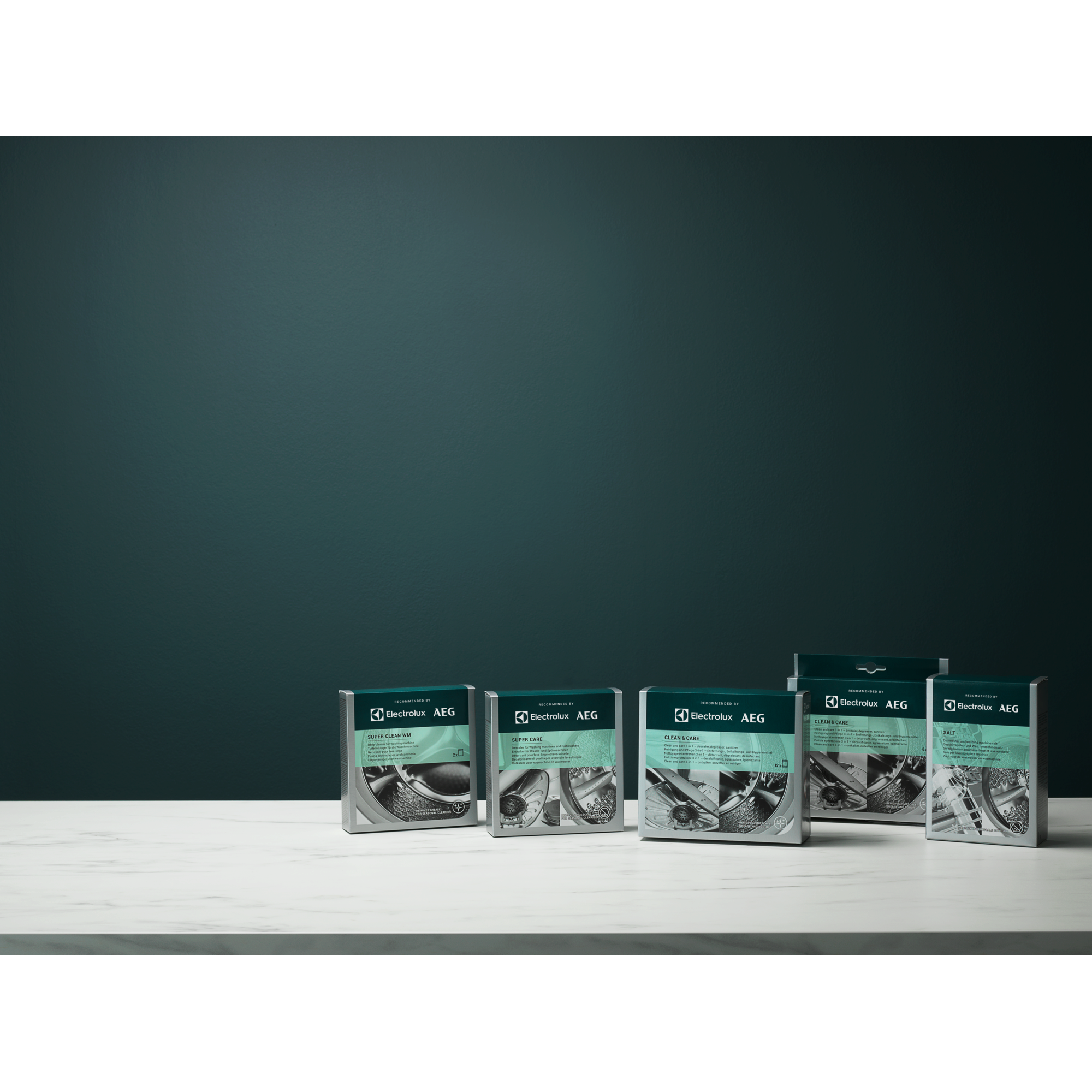Um sicherzustellen, dass dein Gerät optimal funktionieren kann, empfehlen wir Clean & Care 3 in 1. Es reinigt gründlich, entfernt Fett und Kalk und sorgt dafür, dass dein Geschirrspüler und deine Waschmaschine sauber bleiben.