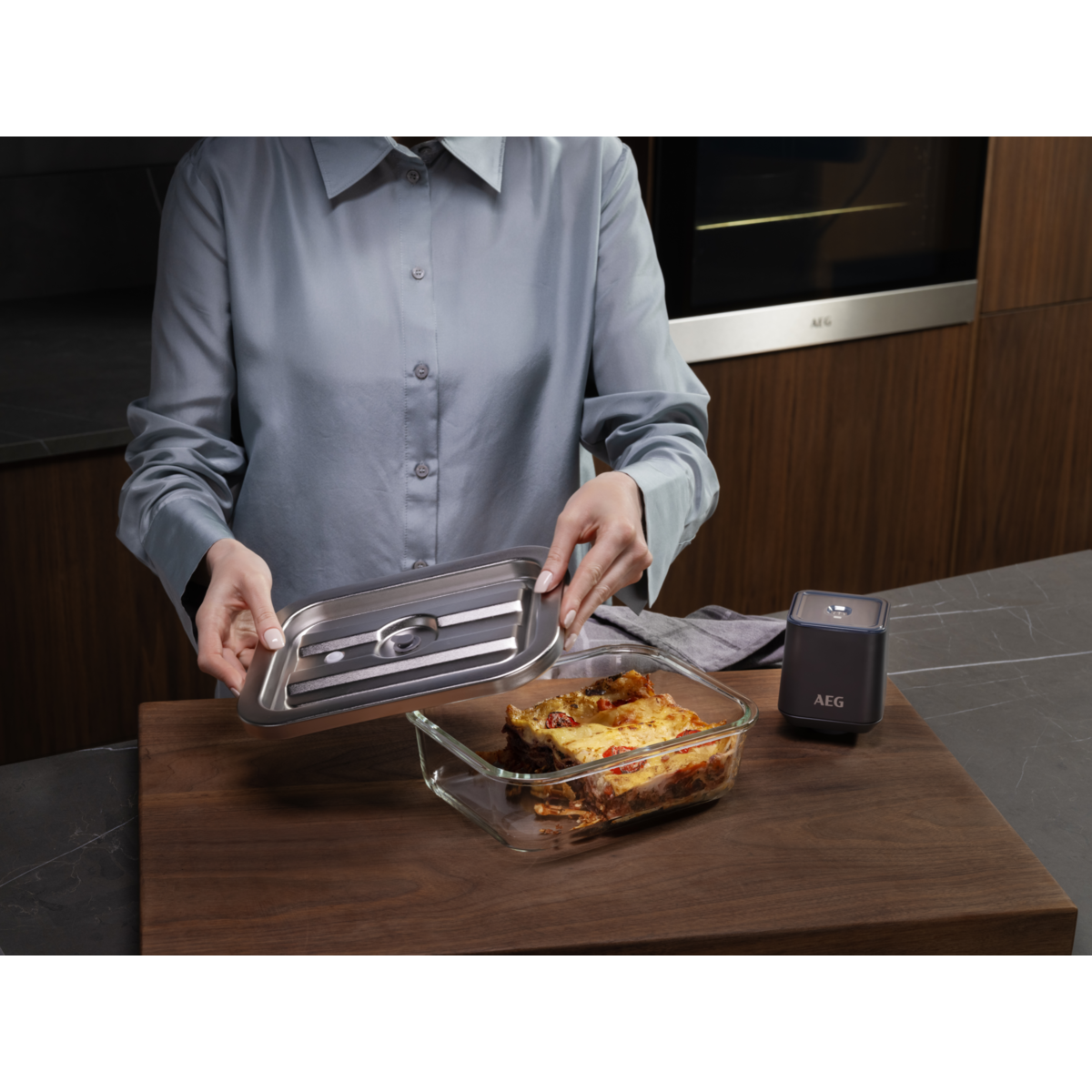 Frische, die bleibt - ganz natürlich. Von der Zubereitung von Mahlzeiten bis zur Aufbewahrung hält unser Vakuum Glasbehälter deine Speisen 5-mal länger frisch¹.