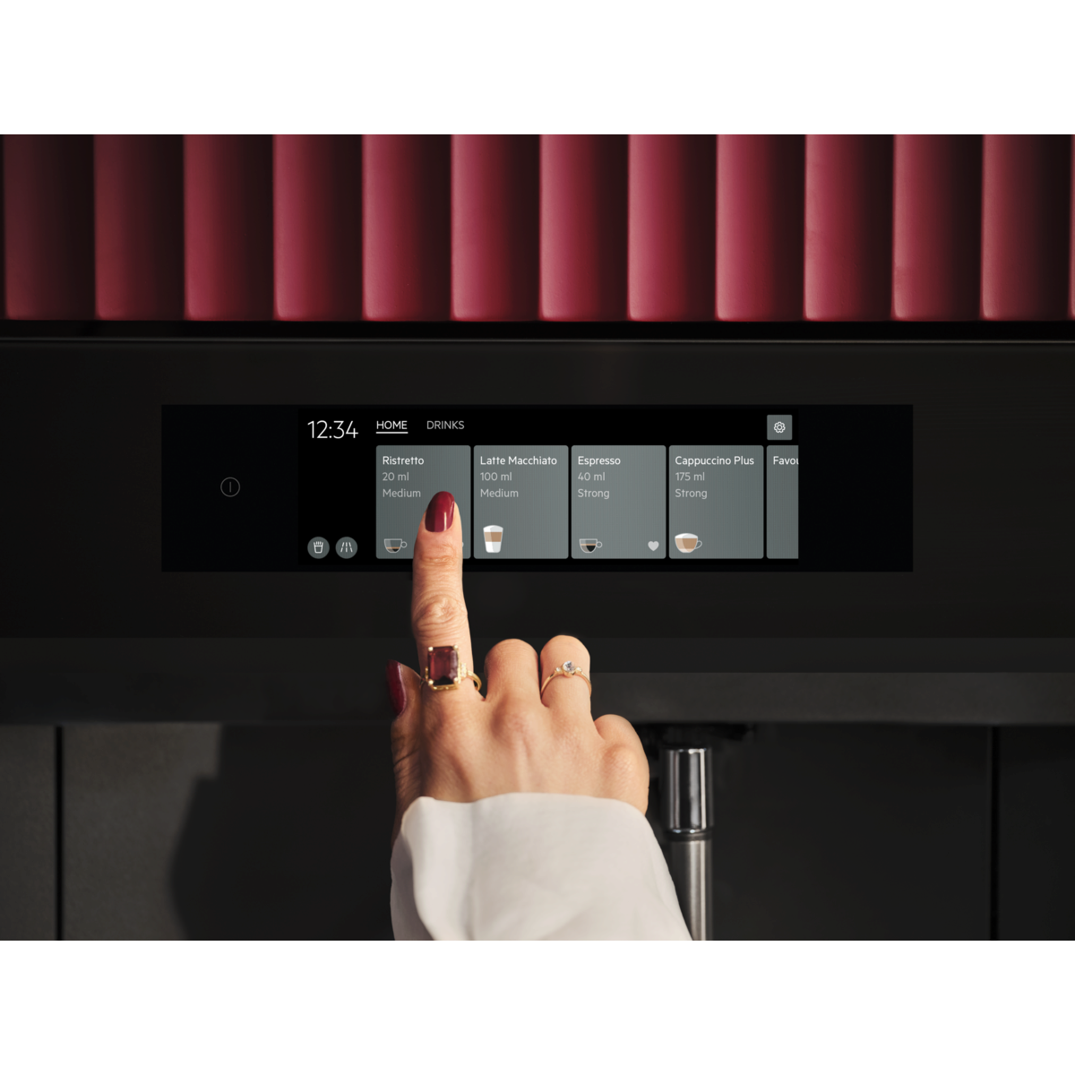Einbau-Kaffeevollautomat mit großem Touch-Display für effiziente Navigation. Bereite eine Auswahl an Kaffee, Espresso und anderen heißen Getränken zu und genieße diese wie du sie magst.