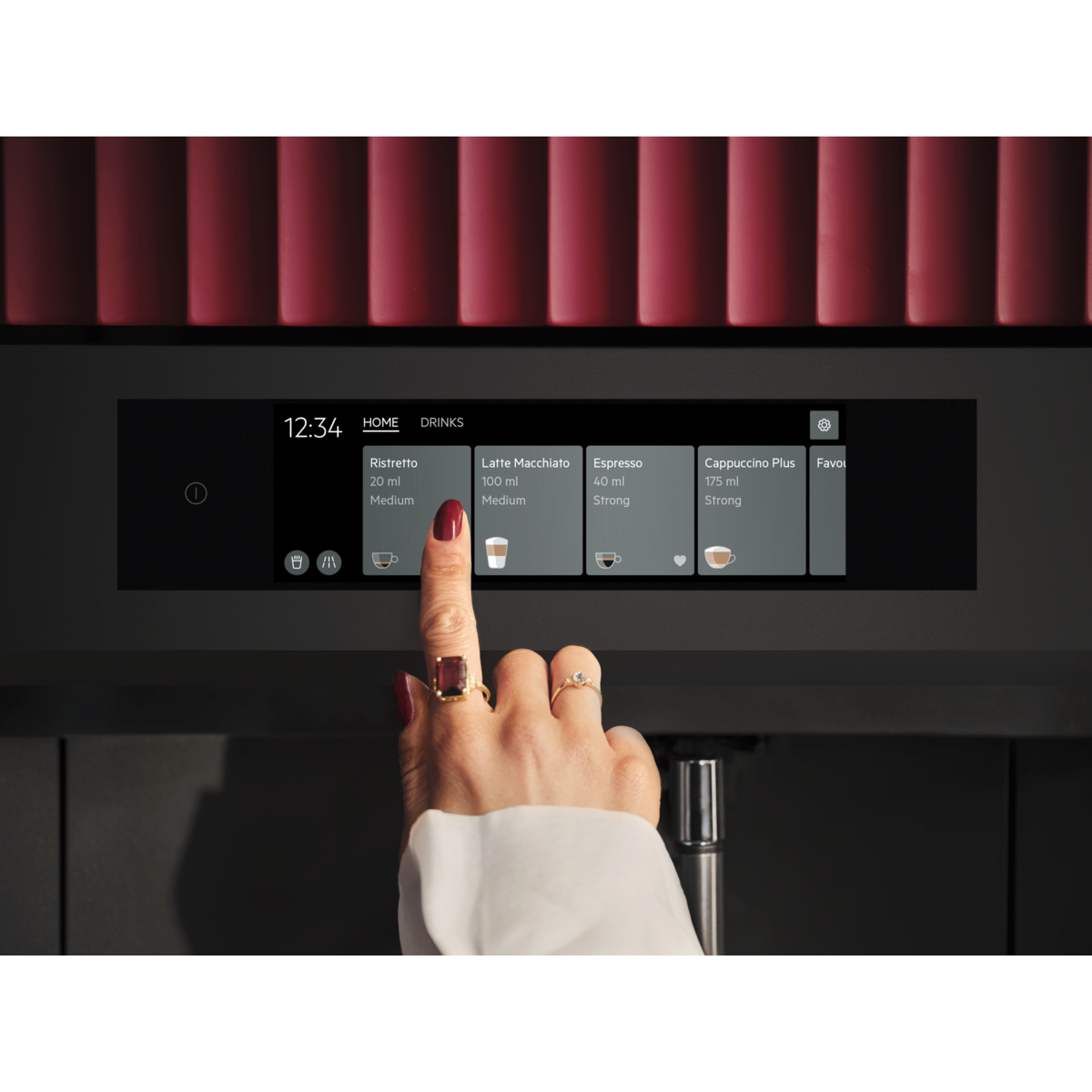 Einbau-Kaffeevollautomat mit großem Touch-Display für effiziente Navigation. Bereite eine Auswahl an Kaffee, Espresso und anderen heißen Getränken zu und genieße diese wie du sie magst.