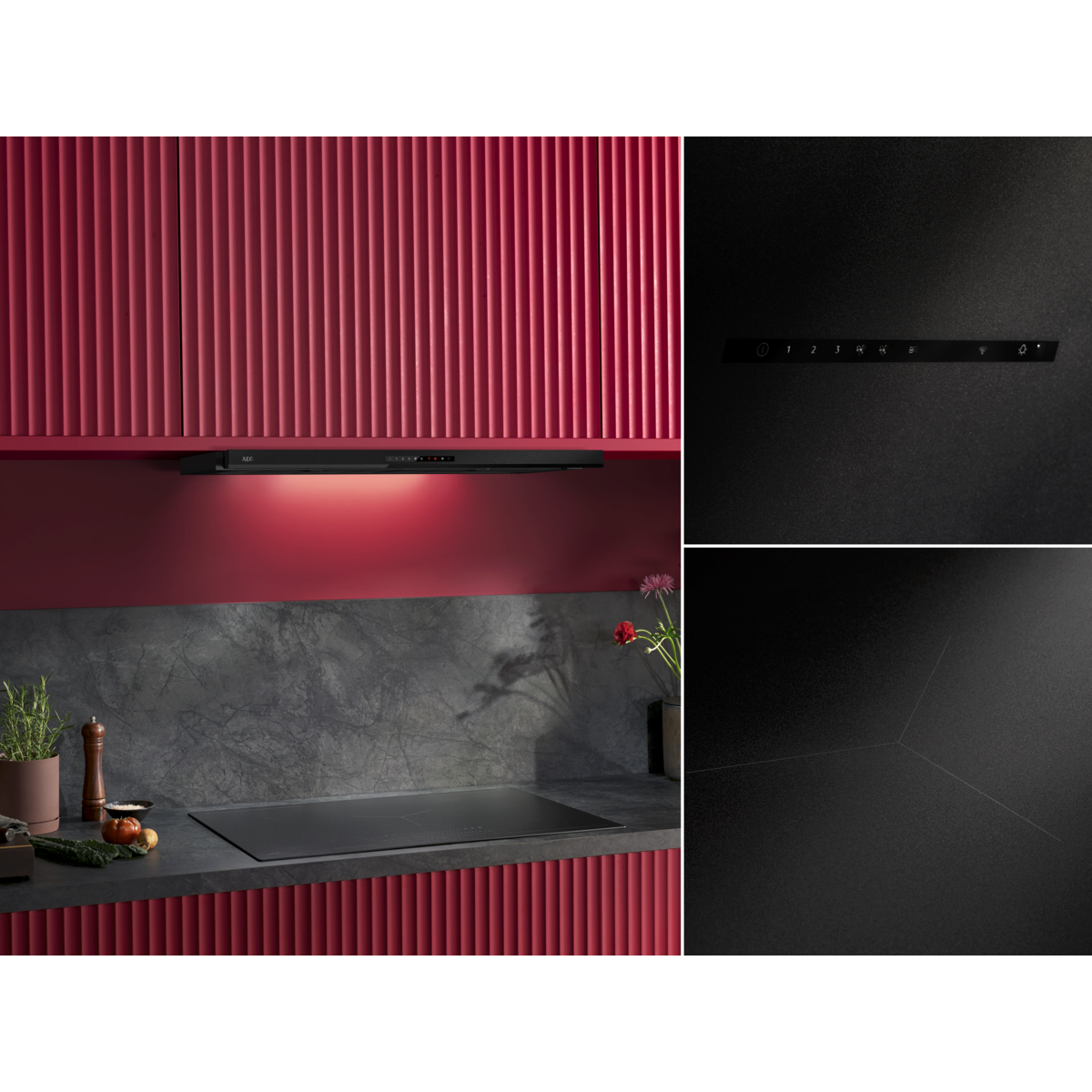 Die 6000 Hob2Hood® Dunstabzugshauben passen in Kombination mit einem passenden AEG Kochfeld automatisch die Lüftergeschwindigkeit und Beleuchtung an. Genieße frische und saubere Küchenluft – ohne die Funktionen manuell steuern zu müssen.