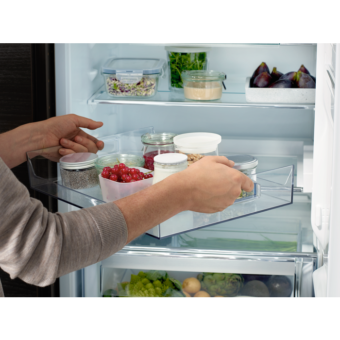 Das entnehmbare Ausziehtablett ermöglicht Dank seiner praktischen Funktionen einen perfekten Blick und besten Zugriff auf Ihre Lebensmittel. Gewährt optimale Flexibilität durch die Entnahme, dank der seitlichen Handgriffe. Einfach die gewünschten Lebensmittel auf das Tablett stellen und zum Zubereiten der Speisen neben die Arbeitsfläche stellen, oder fertige Gerichte damit servieren.