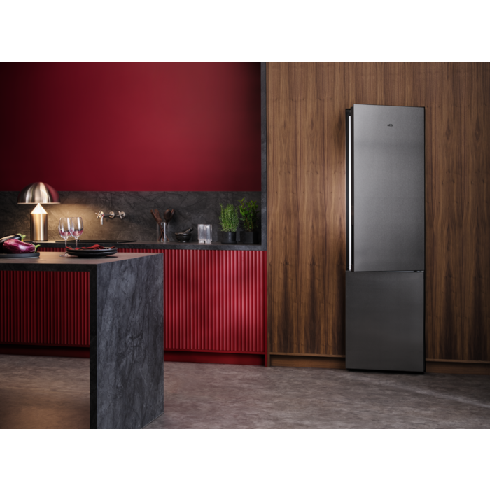 Die AEG 8000 Kühl-Gefrierkombinationen mit 360° Cooling-Technologie bewahren zuverlässig die Frische deiner Lebensmittel. Zahlreiche Luftkanäle und die Edelstahlrückwand stellen nach dem Öffnen der Tür die Temperatur schneller wieder her und sorgen für eine optimale Verteilung der Kühltemperatur.