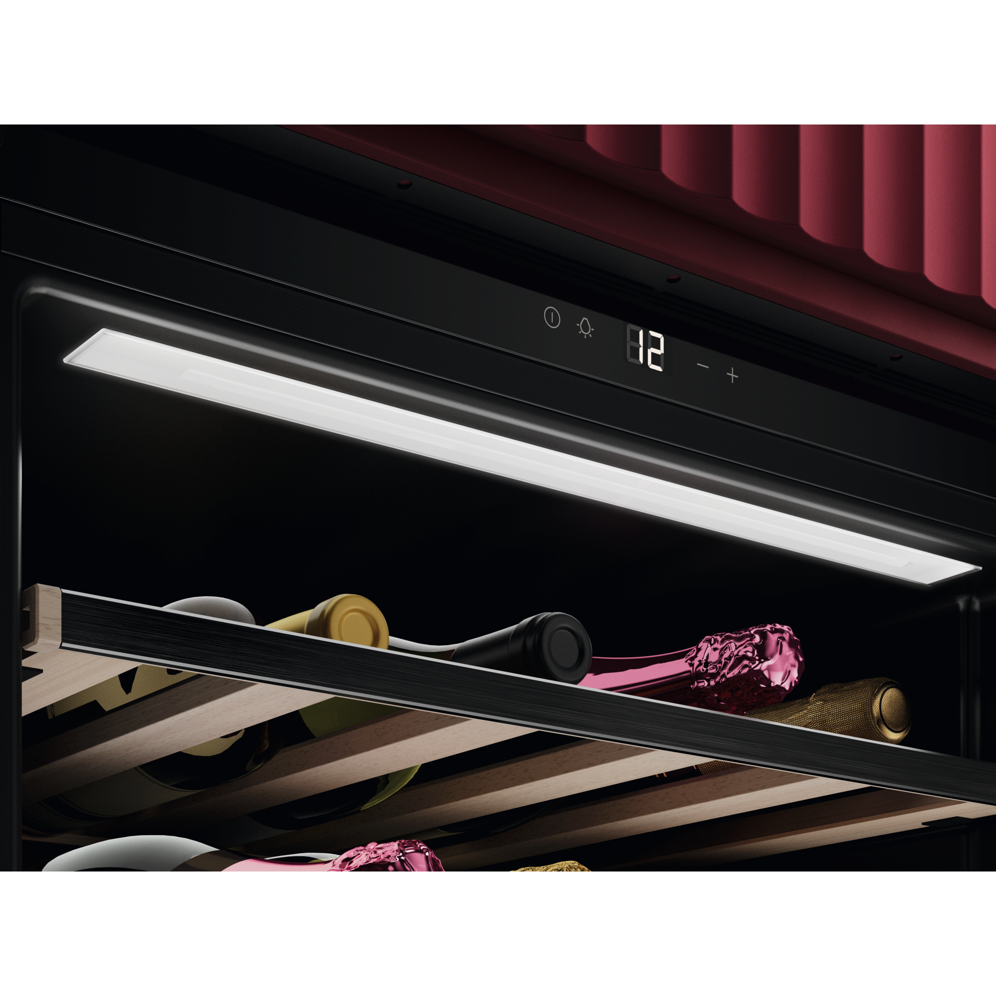 Das perfektionierte Regalsystem der 8000 Weinklimaschränke ermöglicht dir das Lagern deiner gesamten Sammlung, unabhängig der Flaschengröße. Die ausziehbaren Premium-Holzablagen bieten den idealen Abstand für alle 750-ml-Flaschentypen – sogar für deinen Lieblings-Champagner, ohne das Etikett zu zerkratzen.