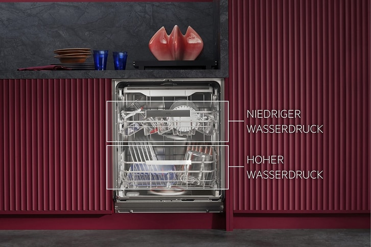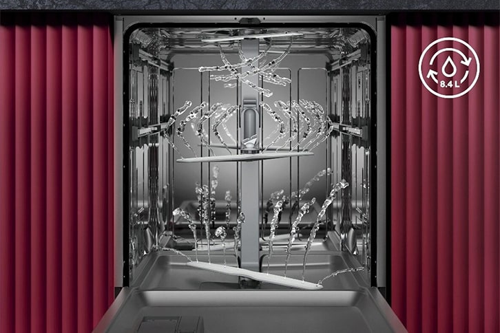 Aktiviert das Wasserkontrollsystem deines Geschirrspülers, um Wasser nur dort einzusetzen, wo es gerade gebraucht wird. So reduziert sich der Wasserverbrauch auf 8,4 Liter ohne Kompromisse beim Reinigungsergebnis.