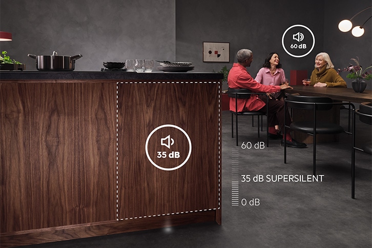 Dank optimierter Software und feinabgestimmter Hydraulik, sorgt SuperSilent für die leiseste Reinigung auf dem Markt. Mit flüsterleisten 35 dB läuft der Spülvorgang so leise, dass du ihn kaum wahrnimmst.