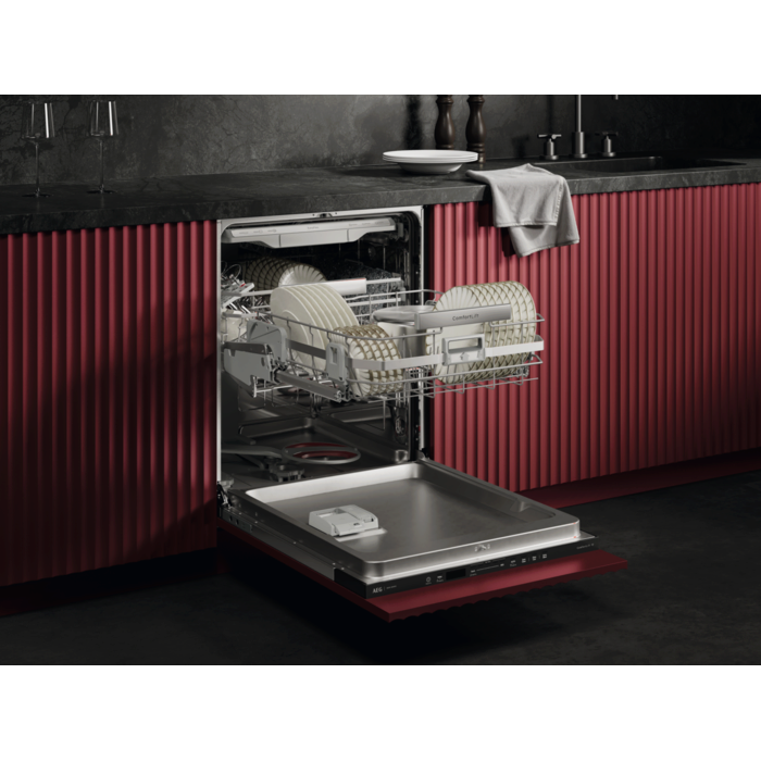 AEG Geschirrspüler der Serie 8000 sorgen für eine kraftvolle Reinigung, selbst bei hartnäckigen Speiserückständen wie Eingebranntem. Die vielseitigen, leichtläufigen Körbe verfügen über klappbare Bereiche und spezielle Glashalterungen. Das hocheffiziente Wassersystem verbraucht nur 8,4 Liter.