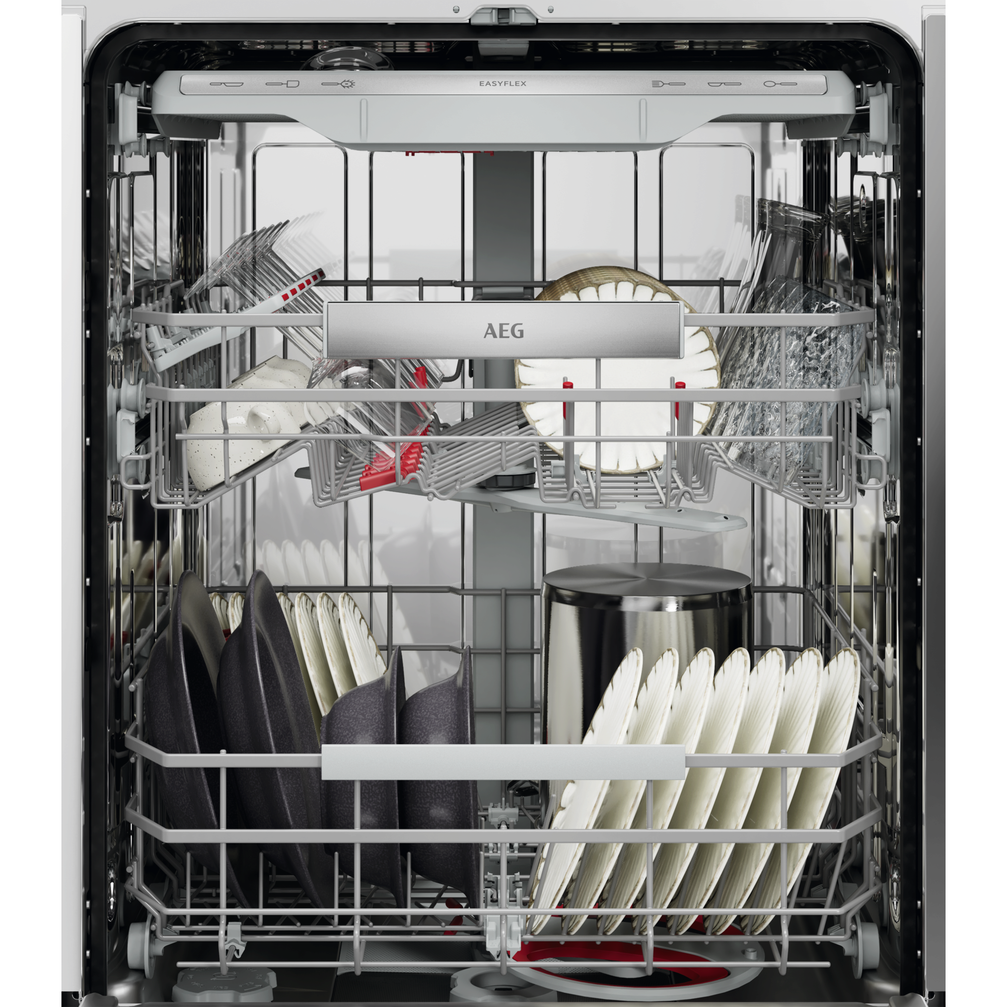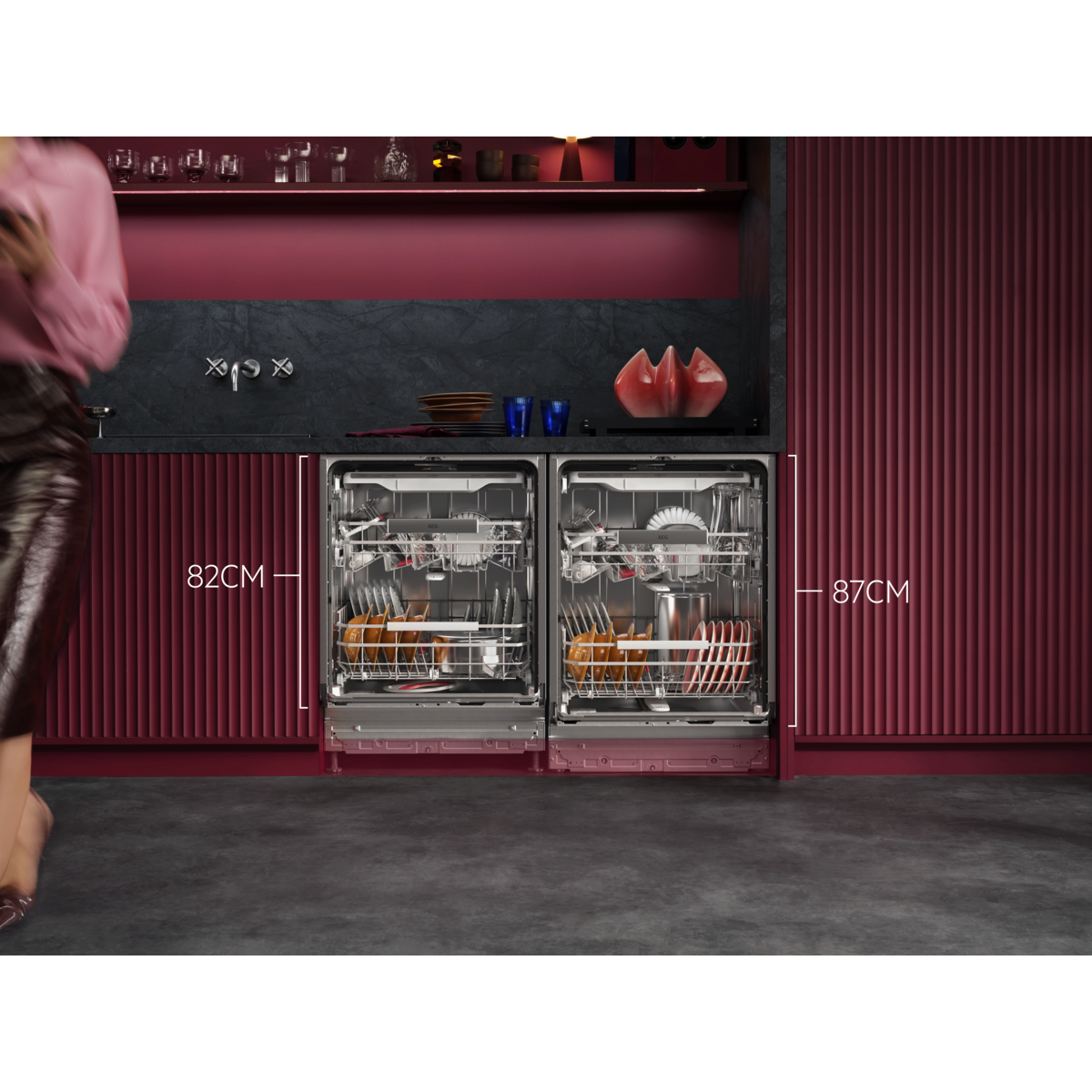 AEG Geschirrspüler der Serie 8000 XXL verfügen über 5 cm mehr Platz und passen unter eine 90 cm hohe Arbeitsplatte. Das hocheffiziente Wassersystem entfernt hartnäckige Speiserückstände bei einem Wasserverbrauch von nur 8,4 Litern. Die Körbe verfügen über klappbare Bereiche und Glashalterungen.