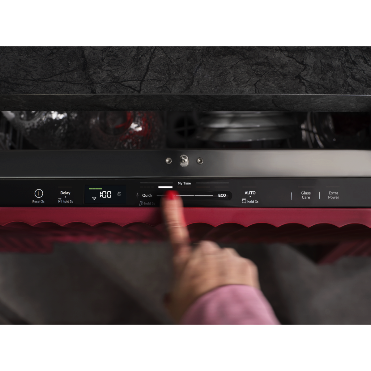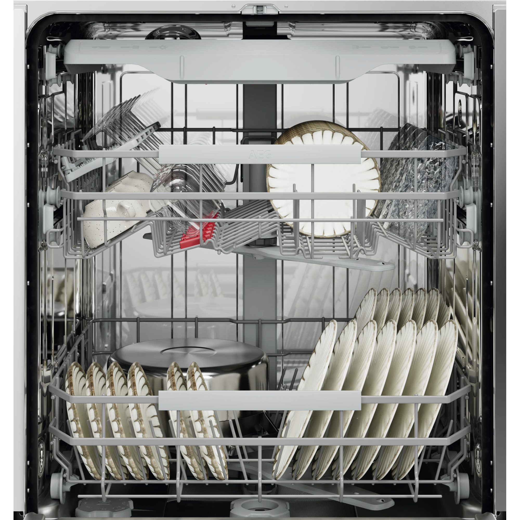 AEG Geschirrspüler der Serie 7000 verfügen über eine hohe Wassereffizienz und effektive Reinigungsleistung bei einem geringen Wasserverbrauch von nur 8,4 Litern dank des neuen Wassersystems. Die flexiblen Körbe mit klappbaren Bereichen sorgen für ein müheloses Beladen.