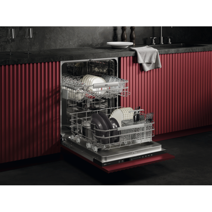AEG Geschirrspüler der Serie 8000 sorgen für eine kraftvolle Reinigung, selbst bei hartnäckigen Speiserückständen wie Eingebranntem. Die vielseitigen, leichtläufigen Körbe verfügen über klappbare Bereiche und spezielle Glashalterungen. Das hocheffiziente Wassersystem verbraucht nur 8,4 Liter.