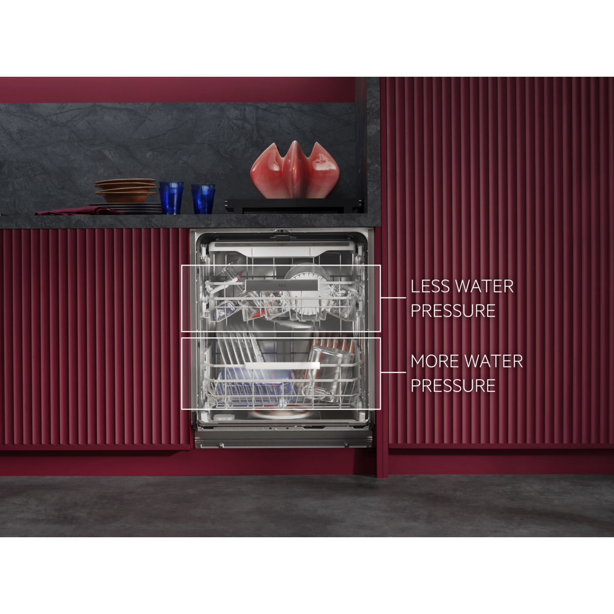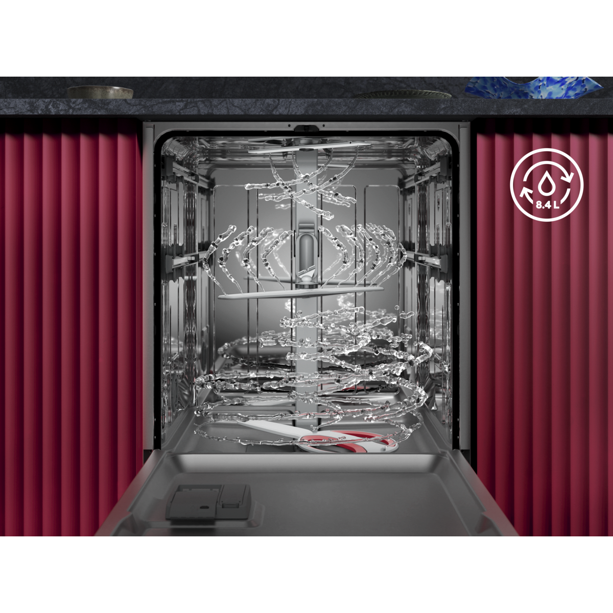 AEG Geschirrspüler der Serie 8000 sorgen für eine kraftvolle Reinigung, selbst bei hartnäckigen Speiserückständen wie Eingebranntem. Die vielseitigen, leichtläufigen Körbe verfügen über klappbare Bereiche und spezielle Glashalterungen. Das hocheffiziente Wassersystem verbraucht nur 8,4 Liter.