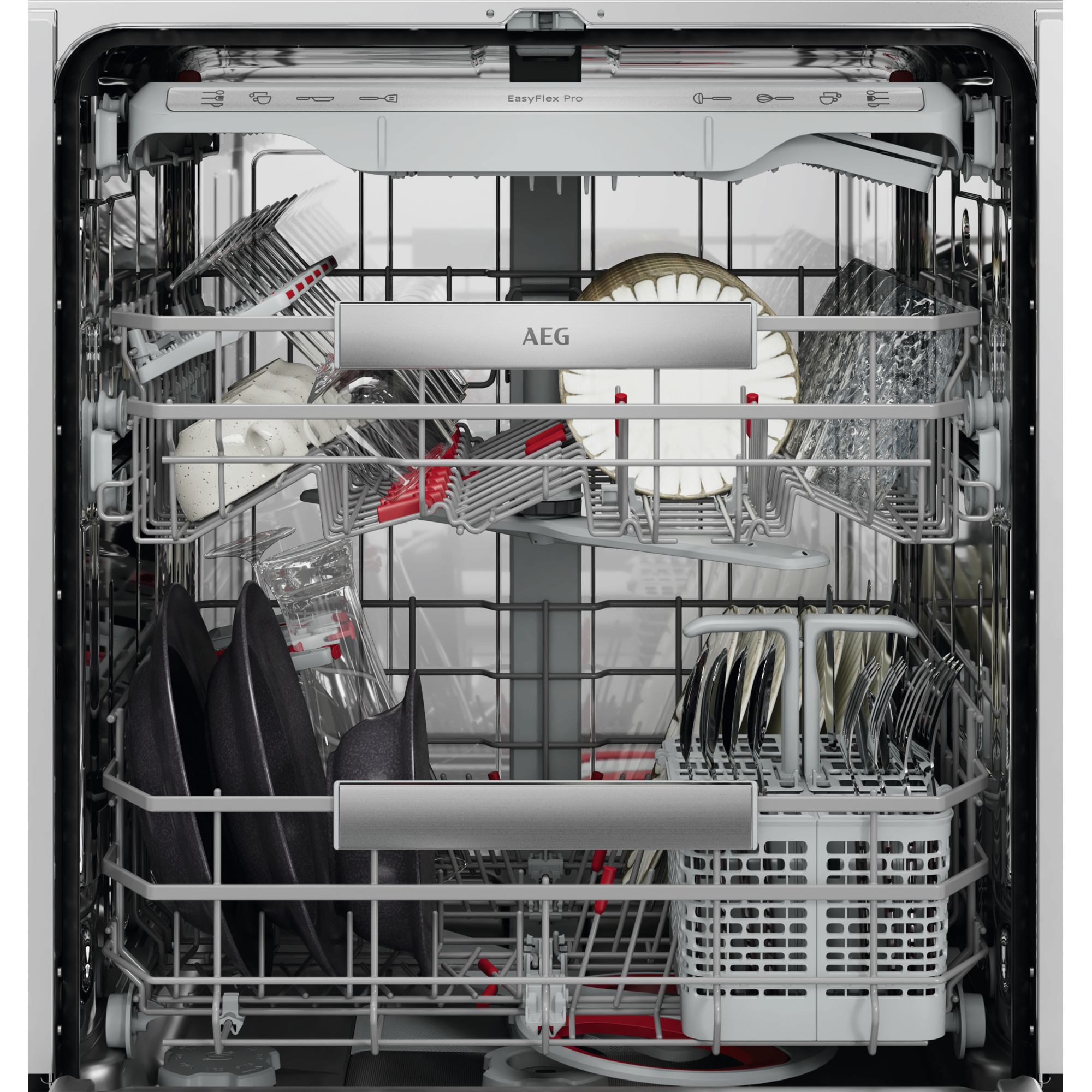 AEG Geschirrspüler der Serie 9000 sind mit multifunktionalen, leichtläufigen Körben und Besteckschubladen sowie speziellen Halterungen für Gläser und Backbleche ausgestattet. Das hocheffiziente Wassersystem entfernt hartnäckige Speiserückstände bei einem geringen Wasserverbrauch von nur 8.4 Litern.