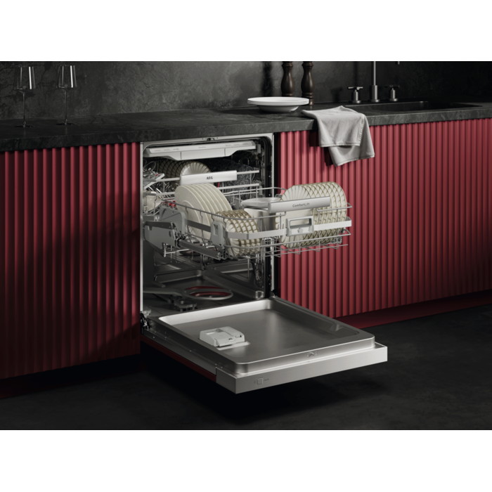 AEG Geschirrspüler der Serie 8000 sorgen für eine kraftvolle Reinigung, selbst bei hartnäckigen Speiserückständen wie Eingebranntem. Die vielseitigen, leichtläufigen Körbe verfügen über klappbare Bereiche und spezielle Glashalterungen. Das hocheffiziente Wassersystem verbraucht nur 8,4 Liter.