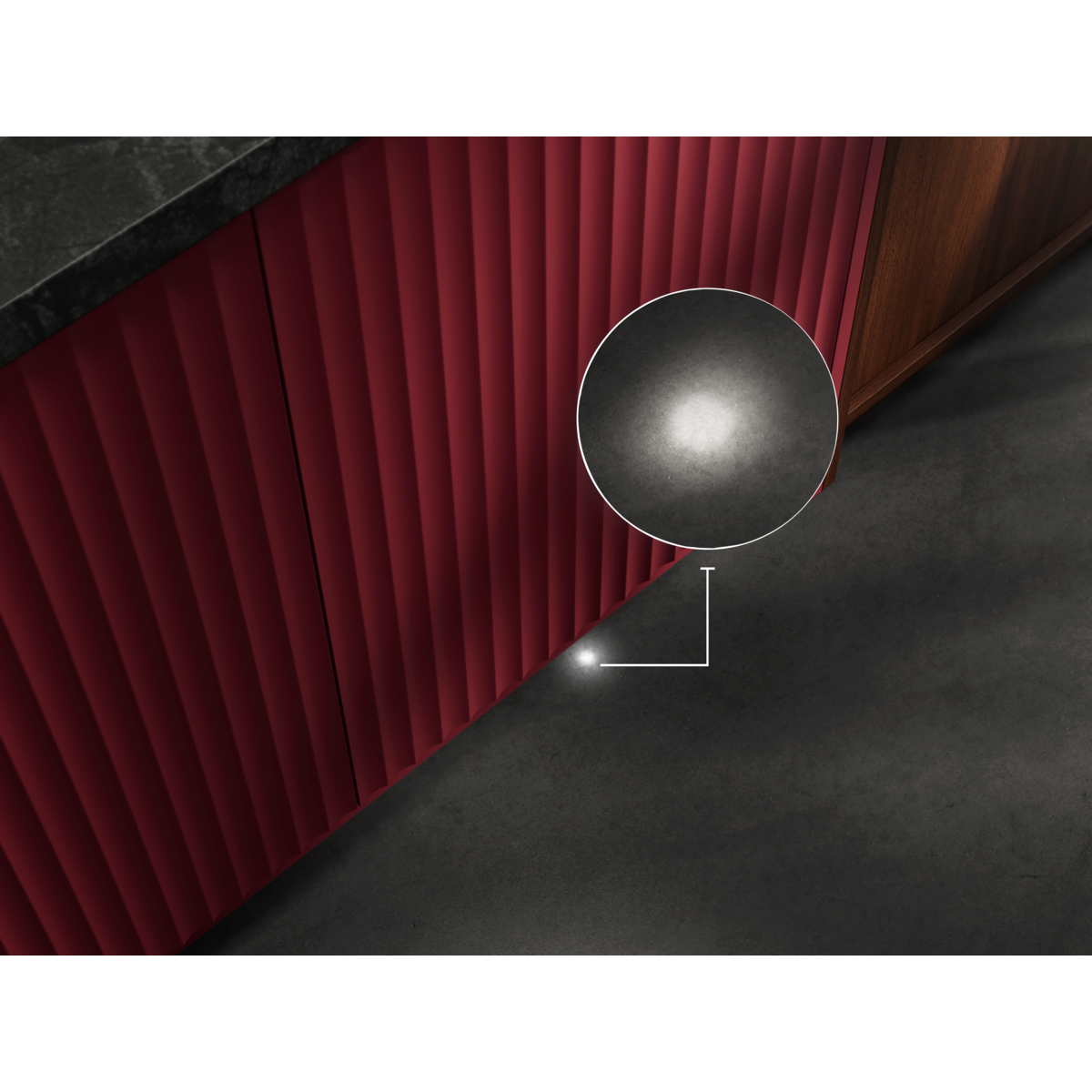 Ein weißer Lichtpunkt am Boden zeigt dir an, wenn der Spülvorgang läuft
