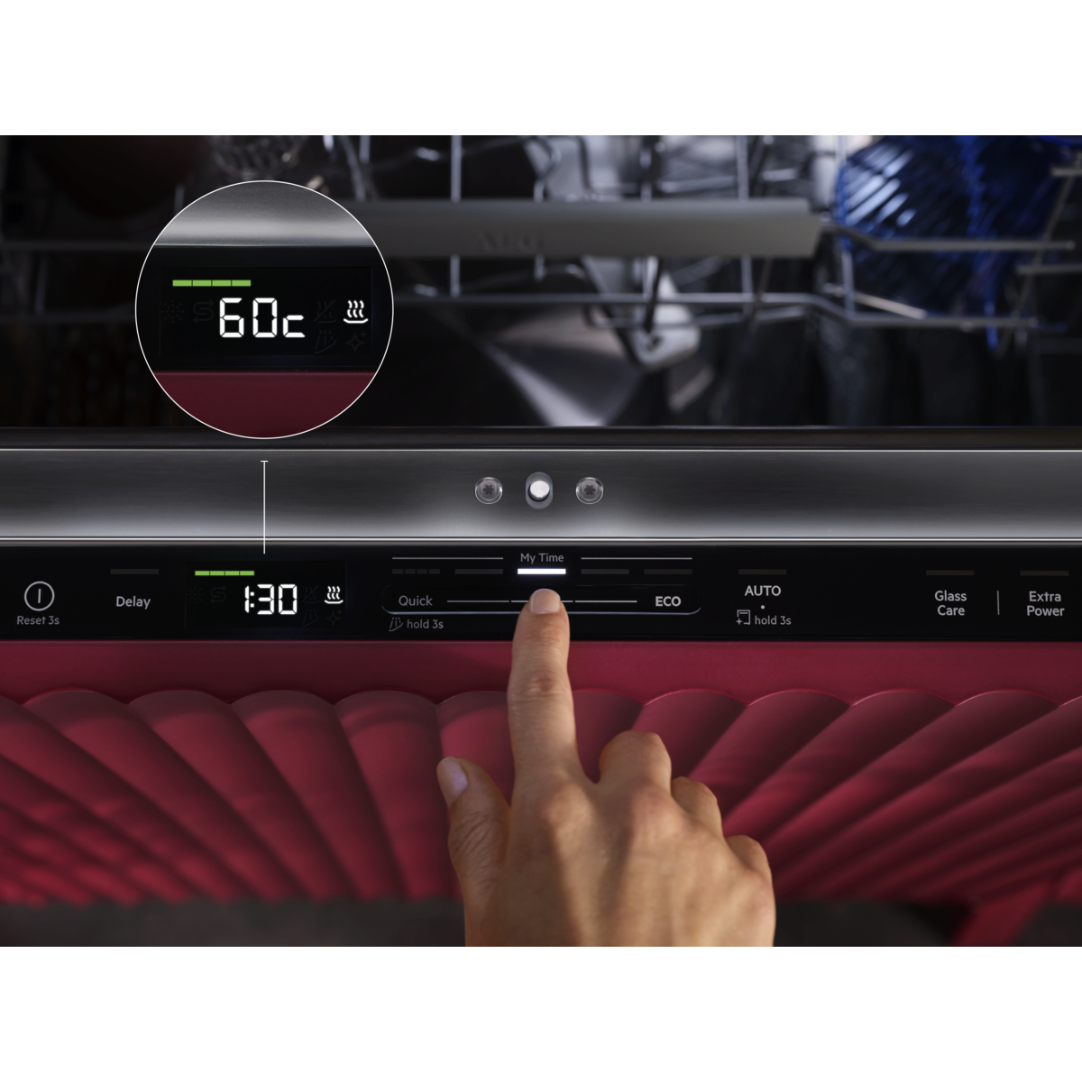 AEG Geschirrspüler der Serie 6000 bieten dank des SatelliteClean® Sprüharms eine hocheffektive Wasserabdeckung. Die zeitbasierte Programmauswahl ist intuitiv über das Bedienfeld zu steuern, während geräumige Körbe und ein höhenverstellbarer Oberkorb flexibles Beladen ermöglichen.