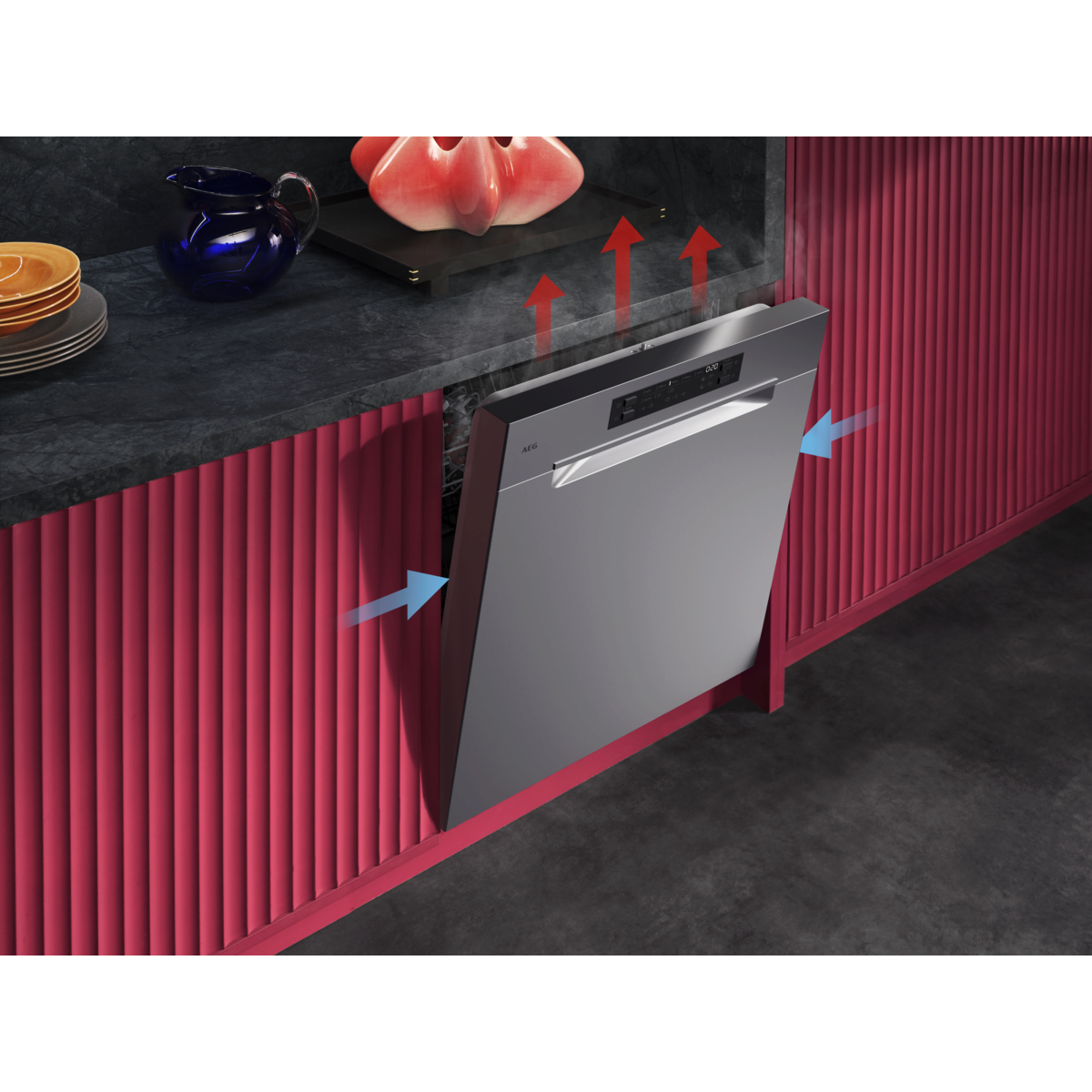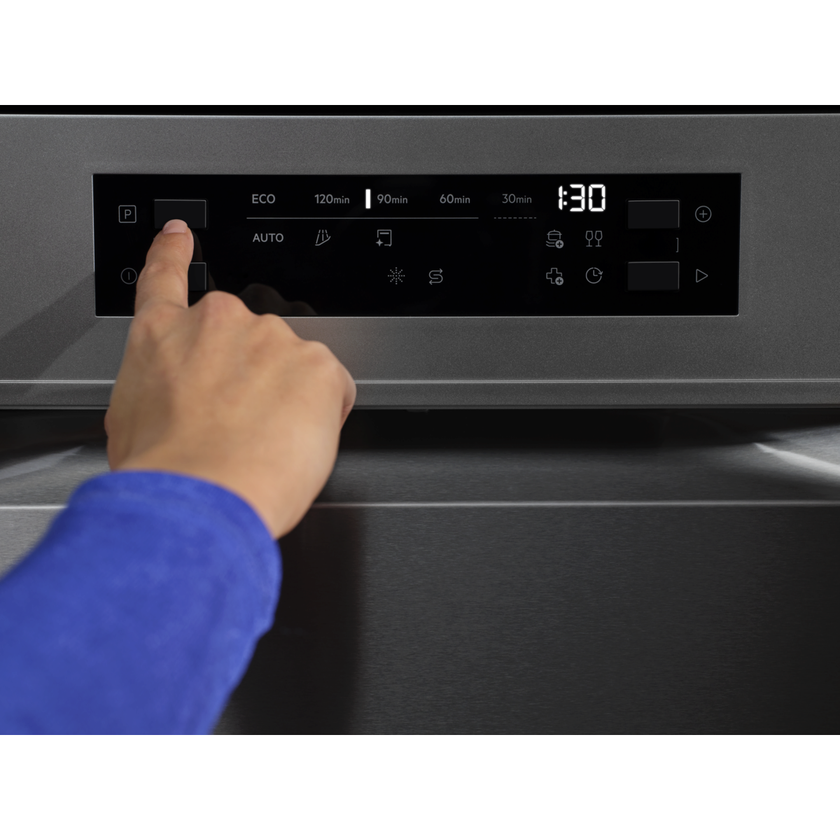 AEG Geschirrspüler der Serie 6000 bieten dank des SatelliteClean® Sprüharms eine hocheffektive Wasserabdeckung. Die zeitbasierte Programmauswahl ist intuitiv über das Bedienfeld zu steuern, während geräumige Körbe und ein höhenverstellbarer Oberkorb flexibles Beladen ermöglichen.