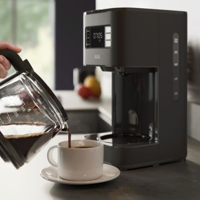 Genieße das unvergessliche Aroma von frisch gebrühtem Kaffee auf Knopfdruck. Mit der Deli 5 Kaffeemaschine bestimmst du dank Vorprogrammierung wann dein Kaffee fertig sein soll. Für köstlichen Kaffeegenuss zu Hause.