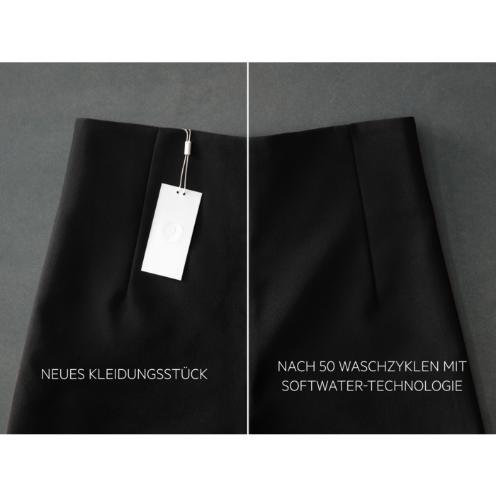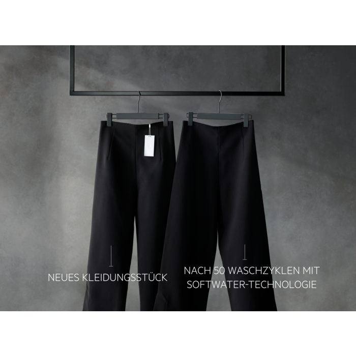 *Externer Test auf Farbechtheit bei schwarzem Polyester nach 50 Waschzyklen bei 30 °C mit SoftWater-Technologie.