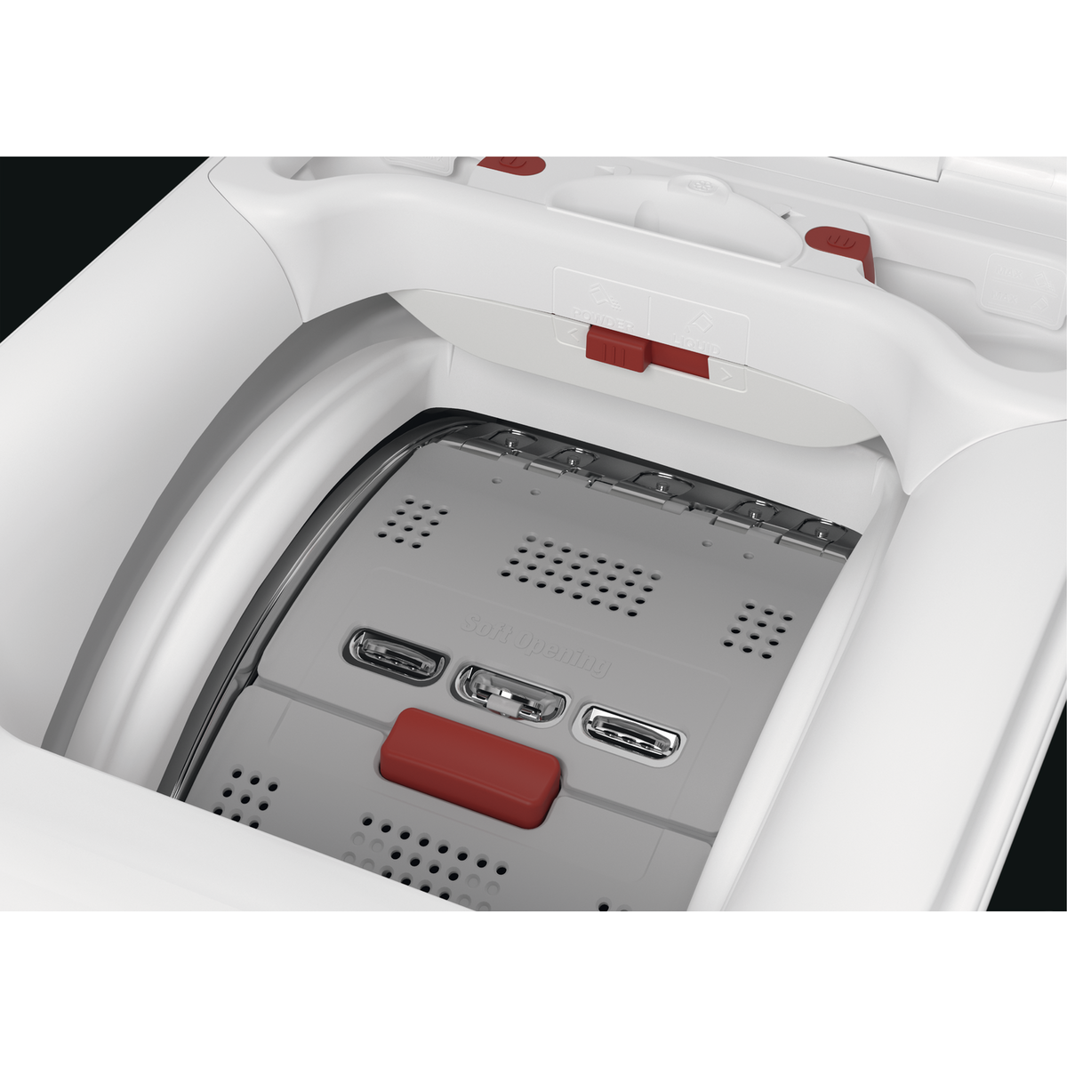 SoftOpening-System: Trommeldeckel öffnet sich sanft auf Knopfdruck.