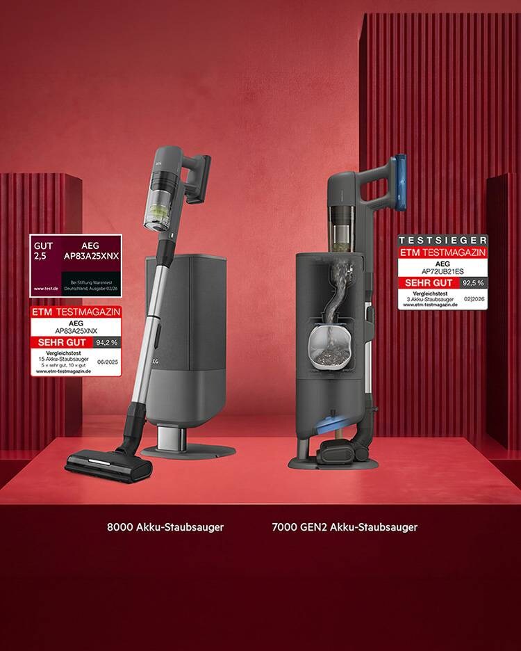 AEG Akku-Staubsauger überzeugen im Test auf ganzer Linie: Stiftung Warentest und das ETM Testmagazin prämieren gleich zwei Geräte mit Absaugstation. Entdecke, warum AEG in unabhängigen Tests überzeugt und wie die ausgezeichneten Modelle deinen Alltag spürbar erleichtern.