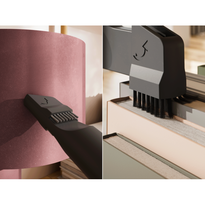 Der 2-Liter-Staubbehälter und eine fortschrittliche Zyklontechnologie sorgen für effiziente Reinigung und weniger Entleerungen. Sein kompaktes Design ermöglicht ein einfaches Verstauen. Die HEPA-Filterung und recycelte Materialien sorgen für sauberere Luft und ein hohes Maß an Nachhaltigkeit.