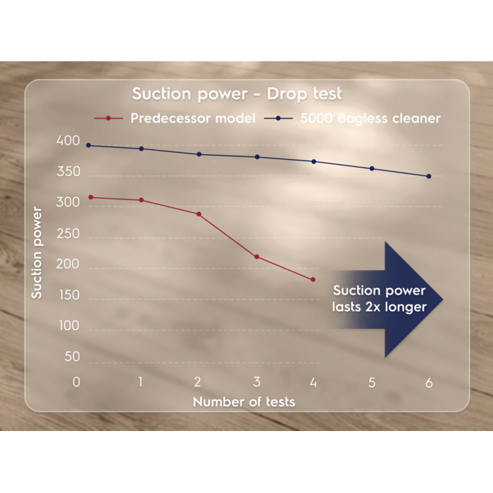 *Basierend auf internen Tests zur Filtration von Mikrostaubpartikeln der Größe 0,3-10 Mikrometer gemäß der Norm IEC62885-2:2021, 5.14 unter Verwendung von Standardsand/Staubpartikeln.