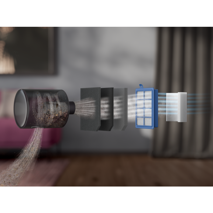 *Basierend auf internen Tests zur Filtration von Mikrostaubpartikeln der Größe 0,3-10 Mikrometer gemäß der Norm IEC62885-2:2021, 5.14 unter Verwendung von Standardsand/Staubpartikeln.