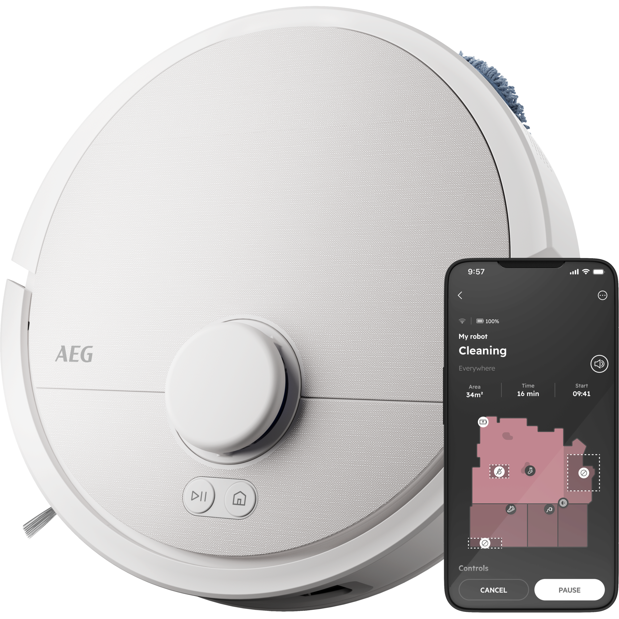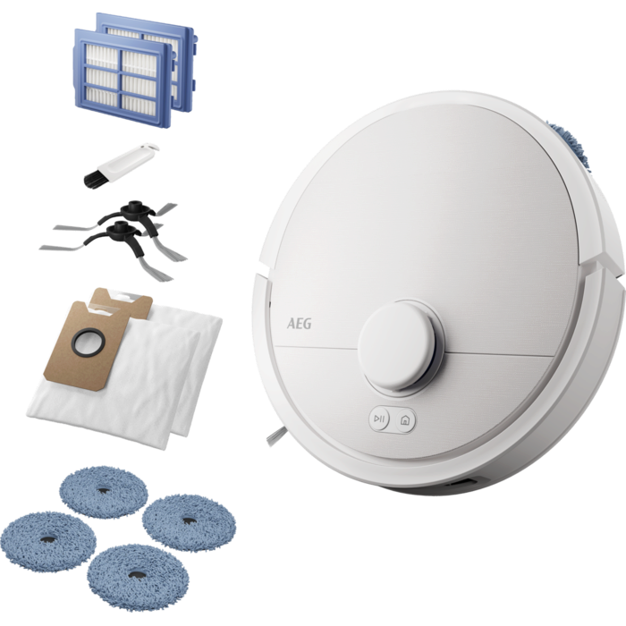 Der AEG Saug-/Wischroboter reinigt Teppiche und Hartböden gründlich mit seiner fortschrittlichen HyperSuction-Technologie. Er entfernt zuverlässig Staub, Krümel und Tierhaare. Dank PowerCarpetBoost erkennt er Teppiche automatisch und erhöht die Saugkraft - für eine effektive Entfernung von Feinstaub bis zu großen Partikeln.