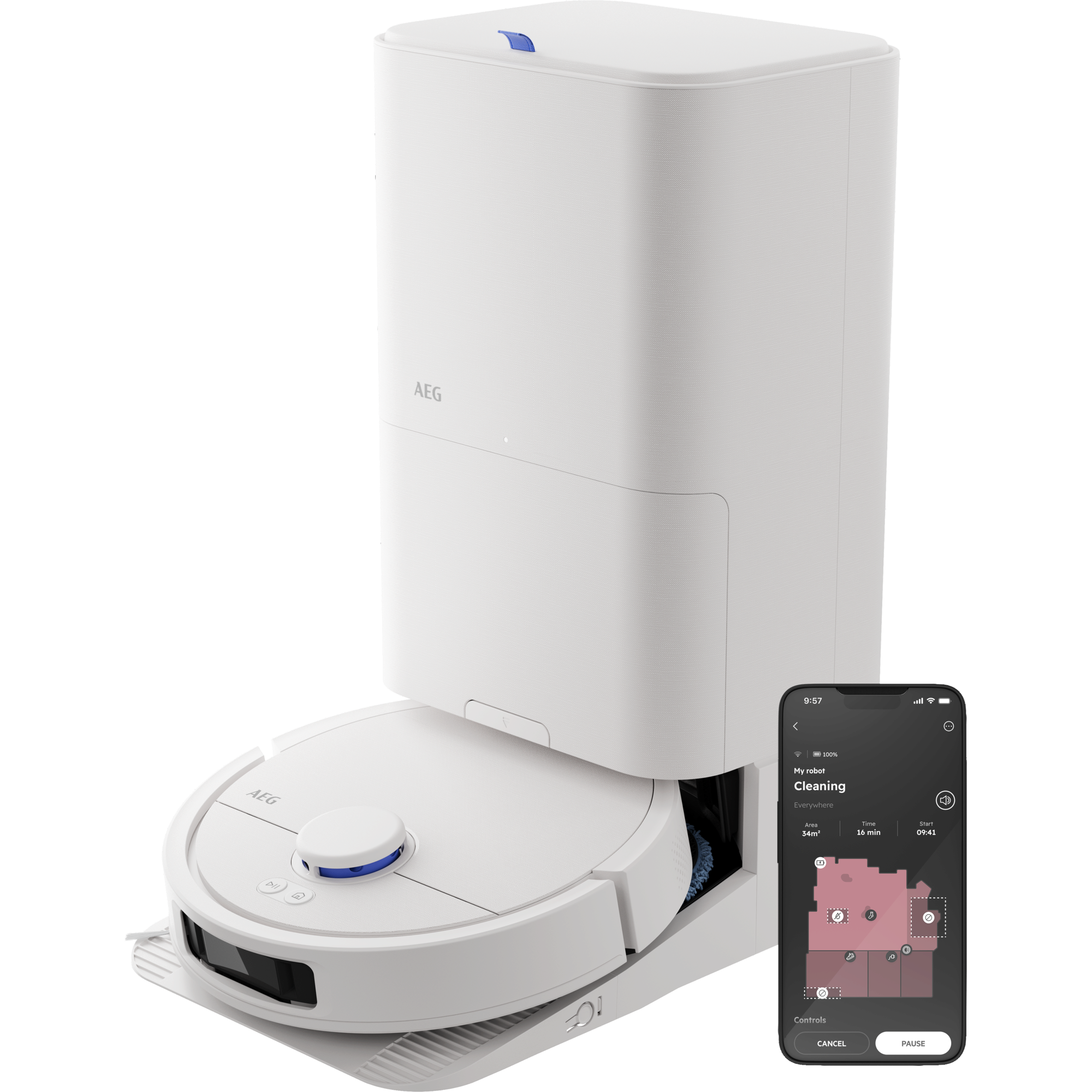 Ja, der AEG Trilobite verfügt über eine All-in-One Station, welche automatisch die Staubabsaugung, Reinigung und Trocknung der Wischpads, sowie das Frisch- und Schmutzwasser-Management übernimmt. Ebenfalls wird Reinigungsmittel zugeführt. Der aufgesaugte Schmutz im Behälter des Saugroboters wird automatisch und hygienisch in einen Beutel entleert. Damit wird die Bodenpflege vollständig automatisiert – ohne manuelles Entleeren oder Befüllen.