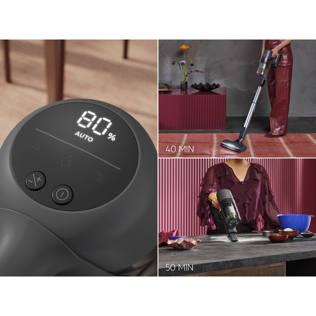 *Basierend auf internen Tests gemäß Norm IEC 62885-4 (Laufzeitmessung Handteil und gesamter Staubsauger im Min-Modus).