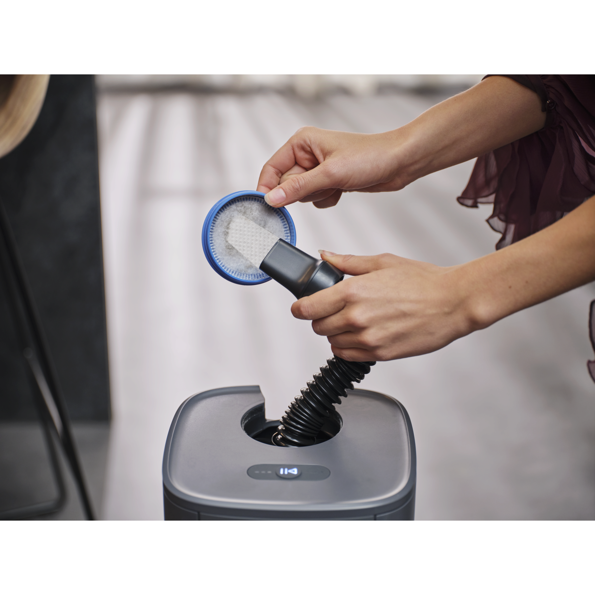 *Der S-bag in der Reinigungsstation muss von Hand geleert werden. ** Basierend auf einem internen Test nach IEC 62885-4 für Partikel der Größe 3-10 Mikrometer.