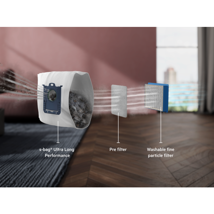 *Basierend auf externen Tests zur Filtration von Mikrostaubpartikeln der Größe 0,3-10 Mikrometer gemäß der Norm IEC62885-2:2021, 5.14 unter Verwendung von Standardsand/Staubpartikeln.