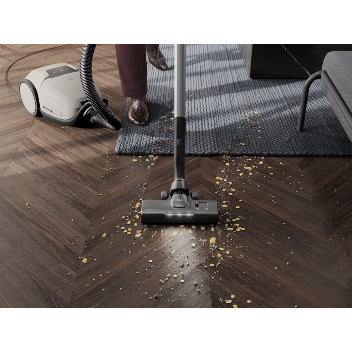 Einfache Reinigung mit der AllFloor Bodendüse mit LED-Frontlicht